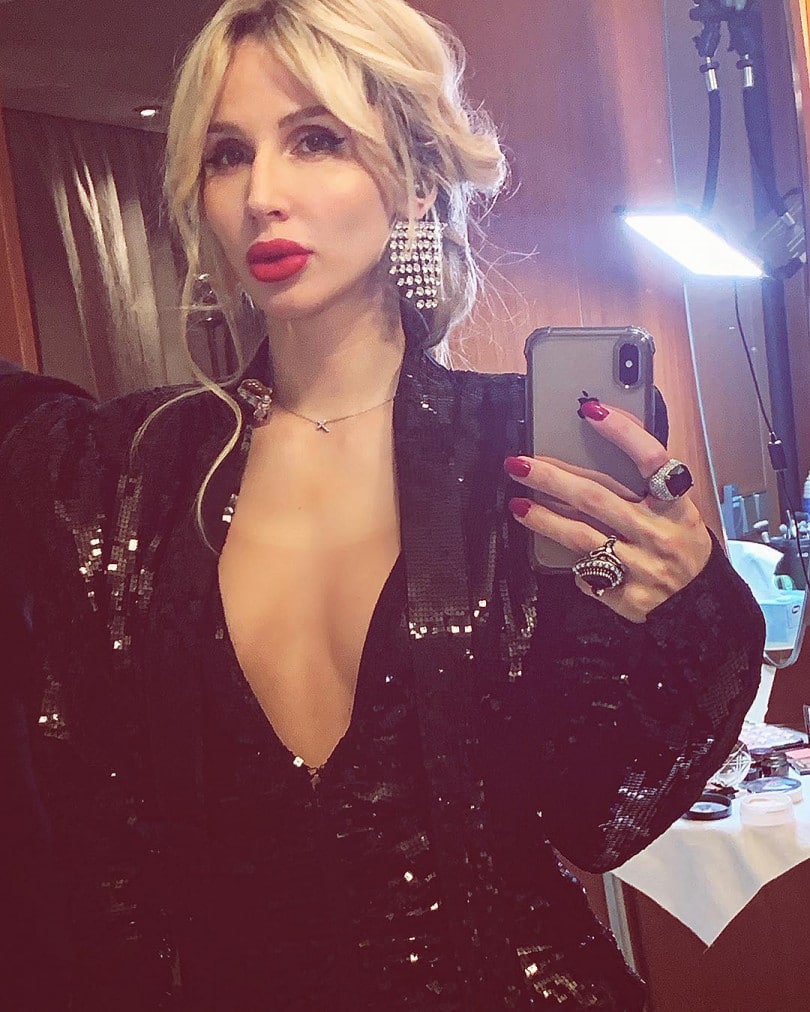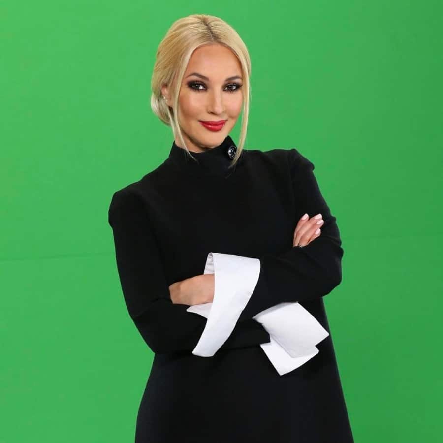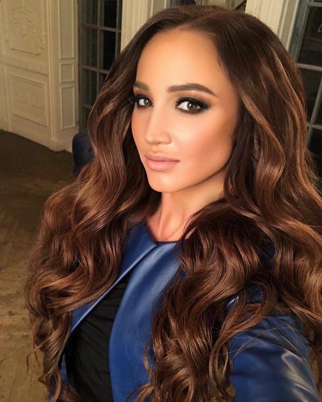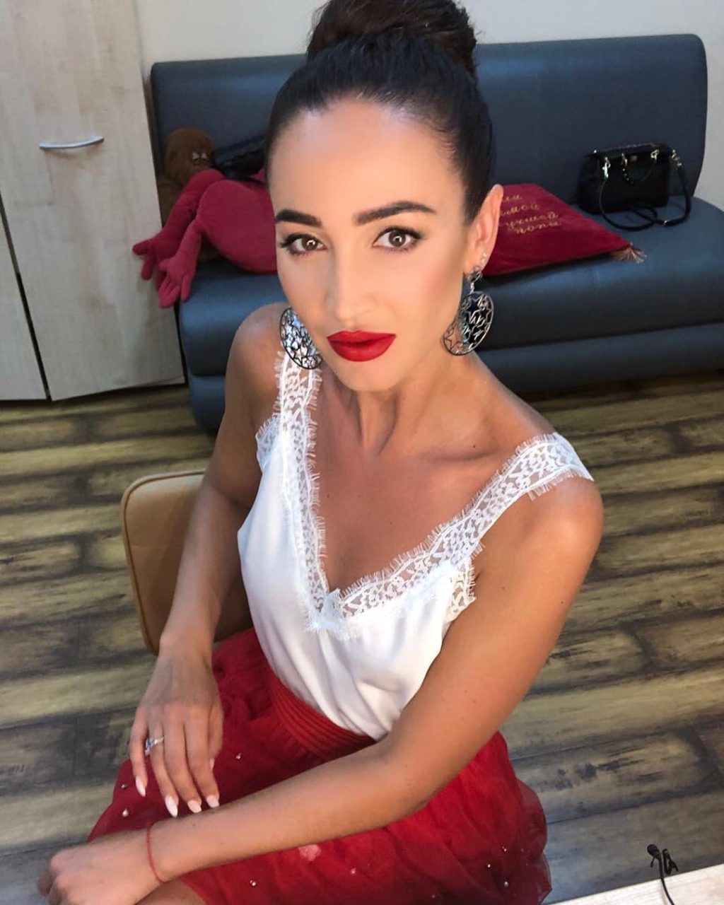 Lena Kudryavtseva has established herself as an excellent TV presenter, as well as an actress. Lena prefers to be painted in more delicate shades, focusing on the eyes. She chooses dark or brown shades that fit well with her brown eyes.