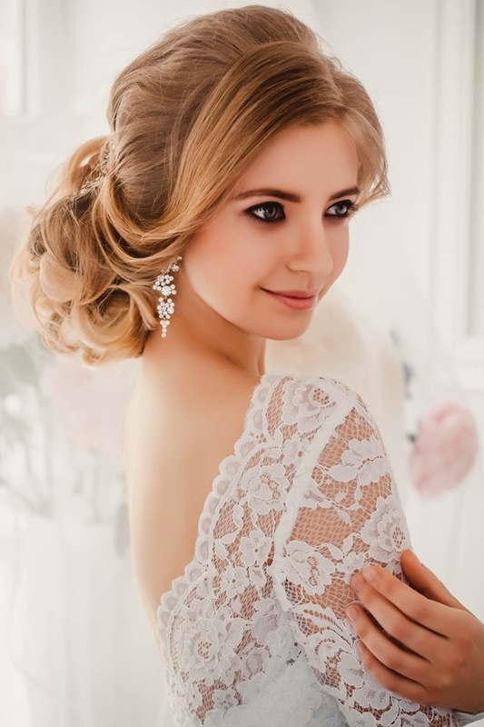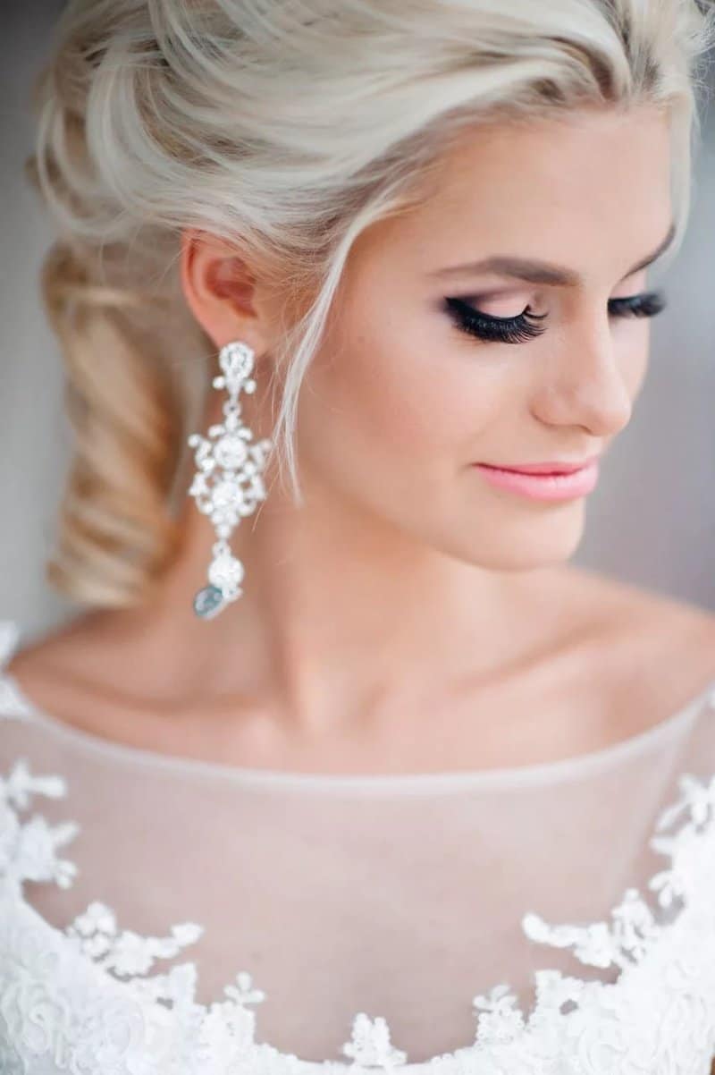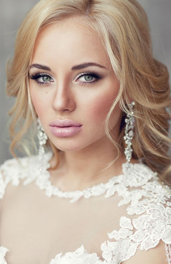 Although now the fashion of wedding dresses has stepped far forward, but still more often the choice falls on the wedding dress on the floor. Makeup for a wedding dress should be gentle and at the same time bright. Traditionally, this is smoky make-up. But now it is possible in all the colors we know from brown to bright purple.