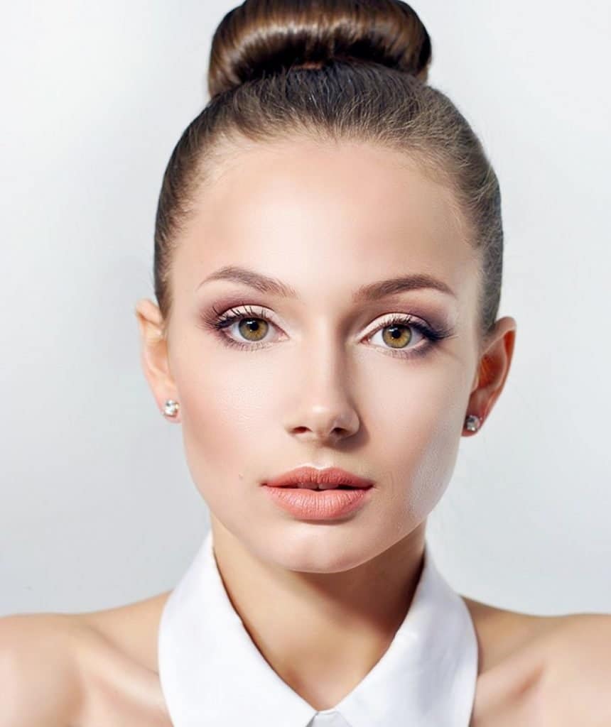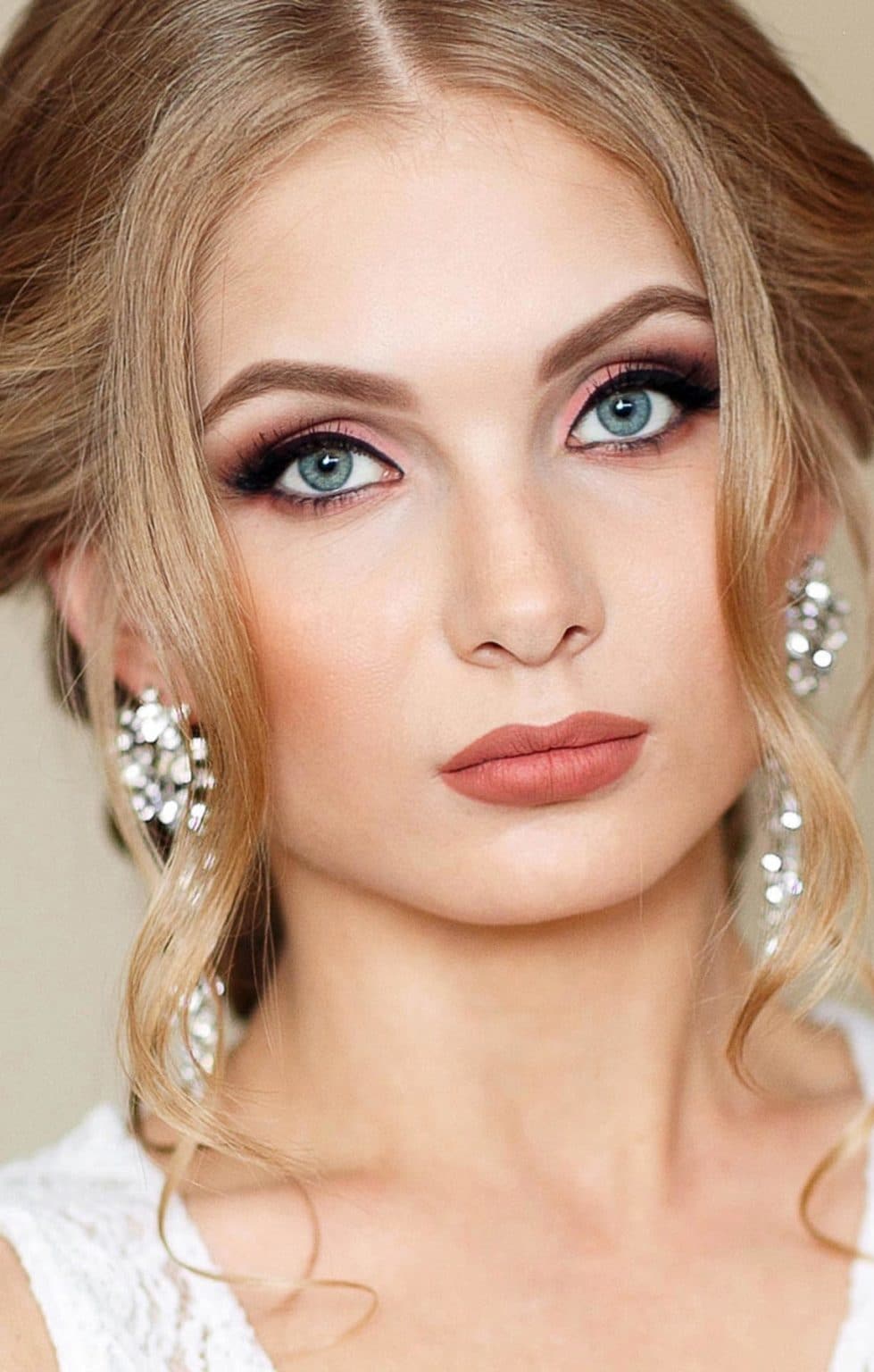 Makeup for dresses for everyday life will not be too bright. After all, we must look natural, but at the same time emphasize all the beauty. To do this, we can do plain, smoky makeup options. Colors are best chosen in brown, gray, purple, pink shades.