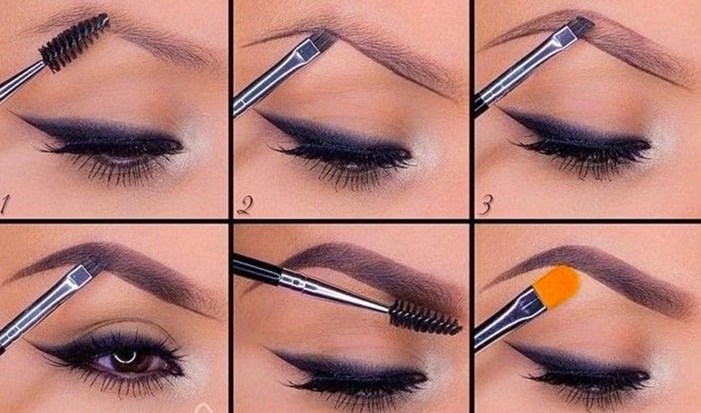 Lipstick is applied to the eyebrows in several approaches. First, take some funds and apply it on the lower edge of the eyebrow, as shown in the figure. Then fill the entire space with lipstick and blend with a brush.