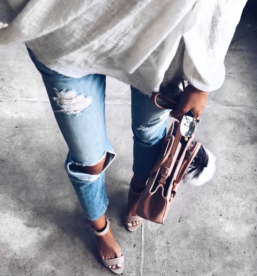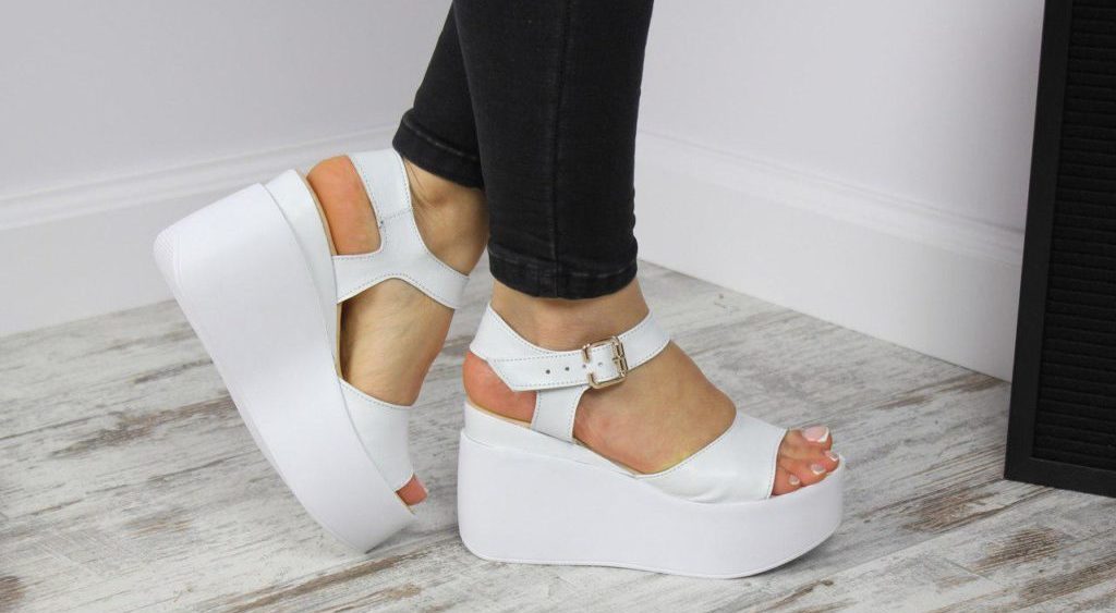White platform sandals are considered the most comfortable look. This is a great choice for the summer, when you can wear them under jeans, skirts, as well as a white pantsuit.