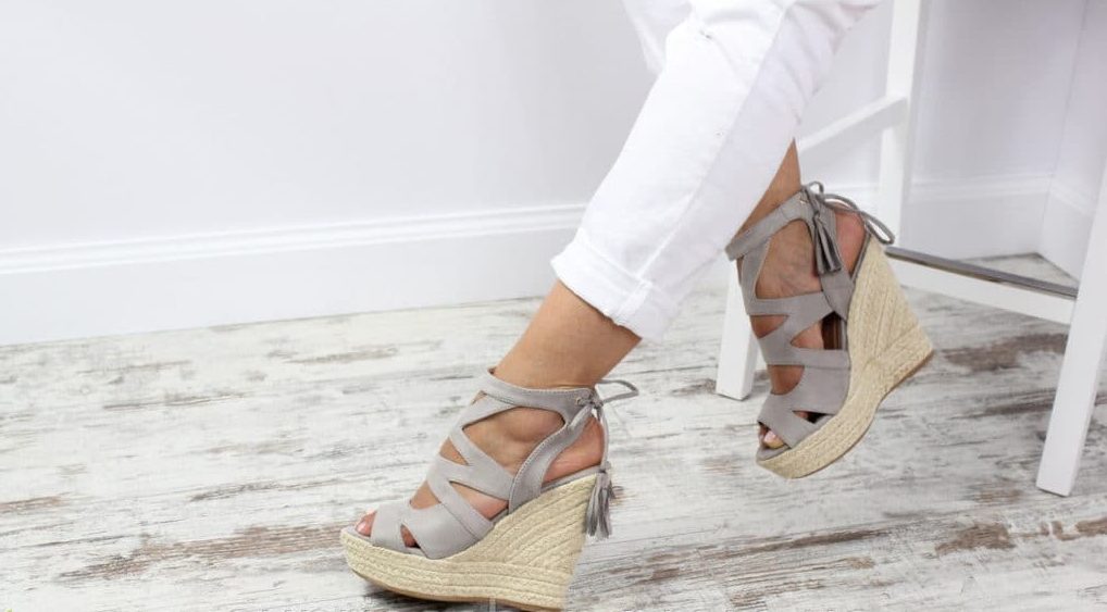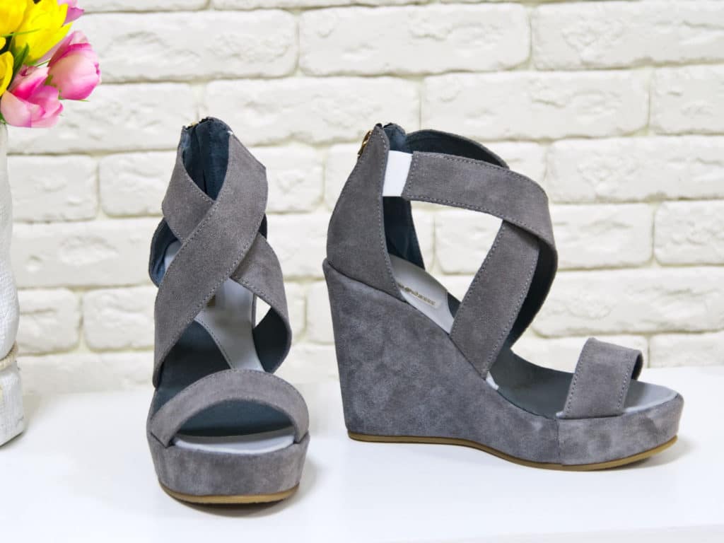 To make gray wedge sandals look expensive, select a model in natural suede. And to create a stylish and elegant look, select only an expensive white color for them.