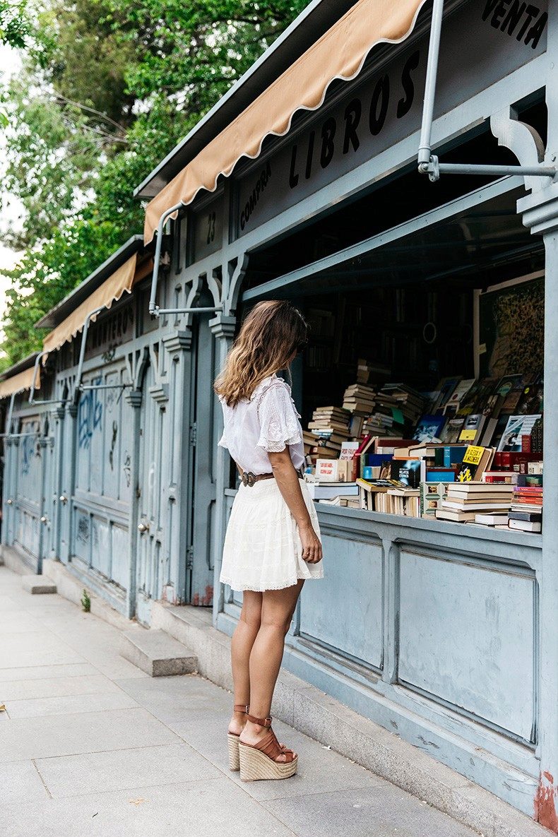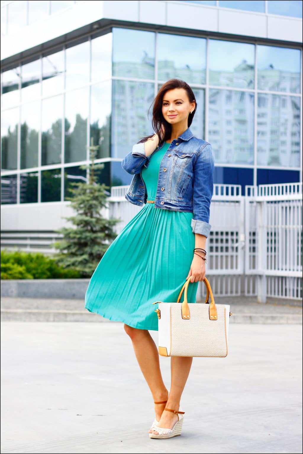 A romantic look will help you create a short skirt in combination with wedge sandals. A blue cardigan will fit perfectly in this look.