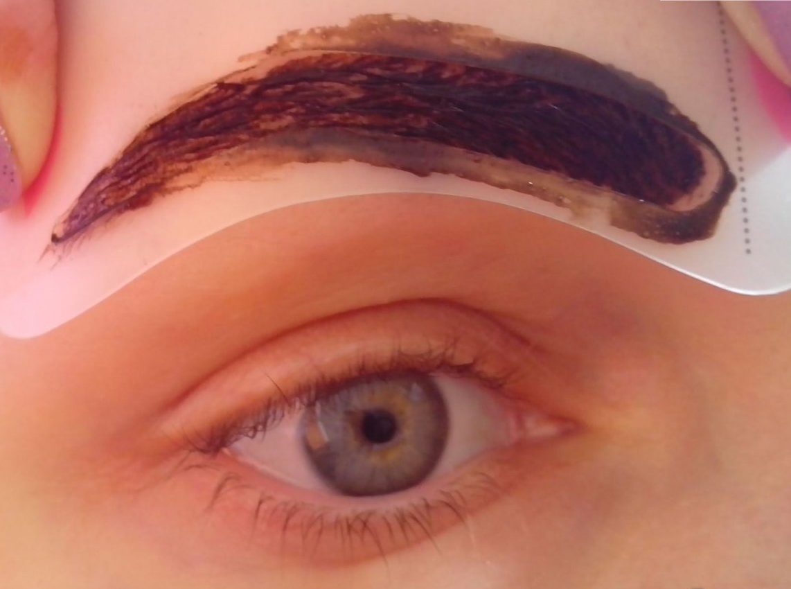 You can also use a stencil to color the eyebrows with paint. After all, the excess will remain on the stencil, and if any milligram gets on the skin, you can easily wipe it off with a cotton swab dipped in water.