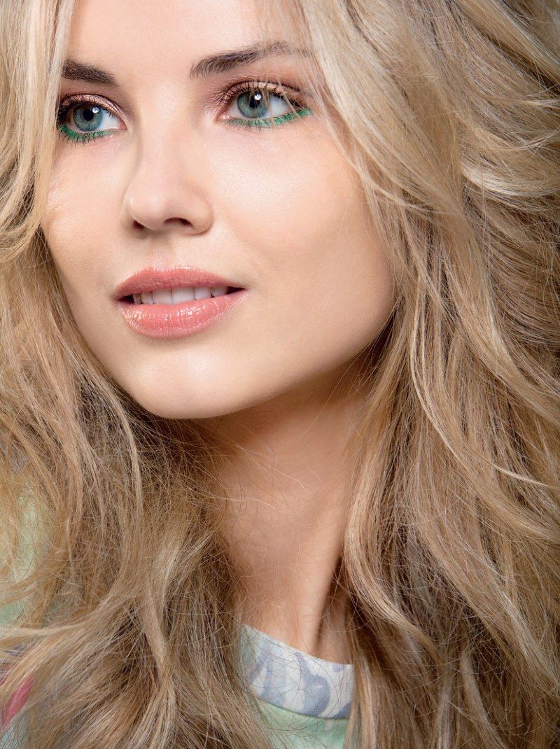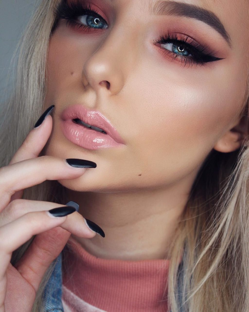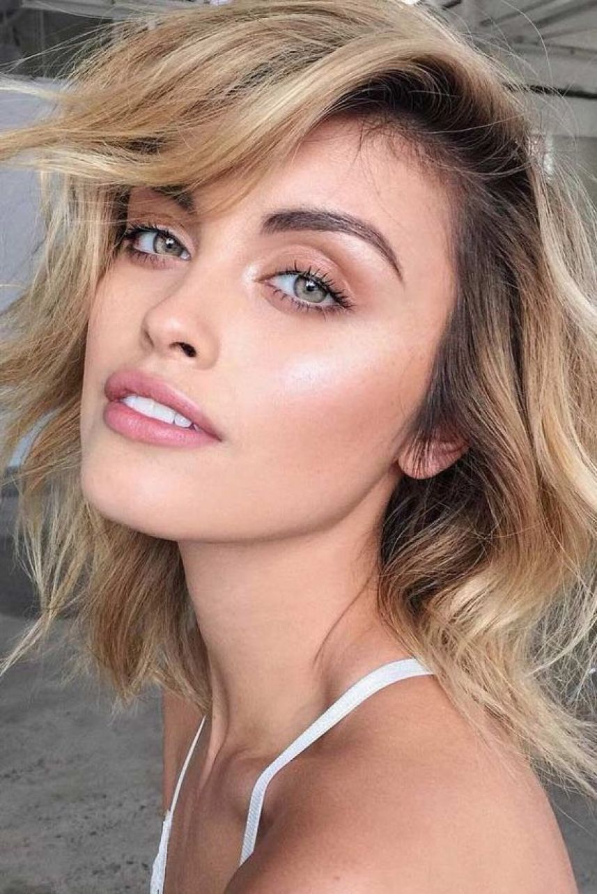 Blondes therefore have a delicate appearance. But the nude color of the lipstick will make the image even nicer.
