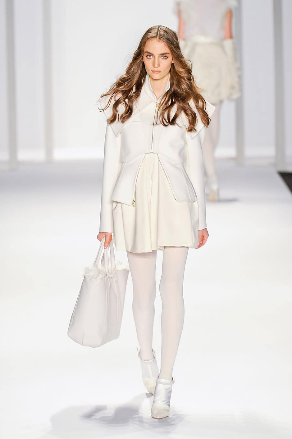 But under a white sweater dress, except for bodily tights, nothing else will do. After all, only with them such a tender bow will look perfect. Shoes by the way, you can pick up both in black and light color.