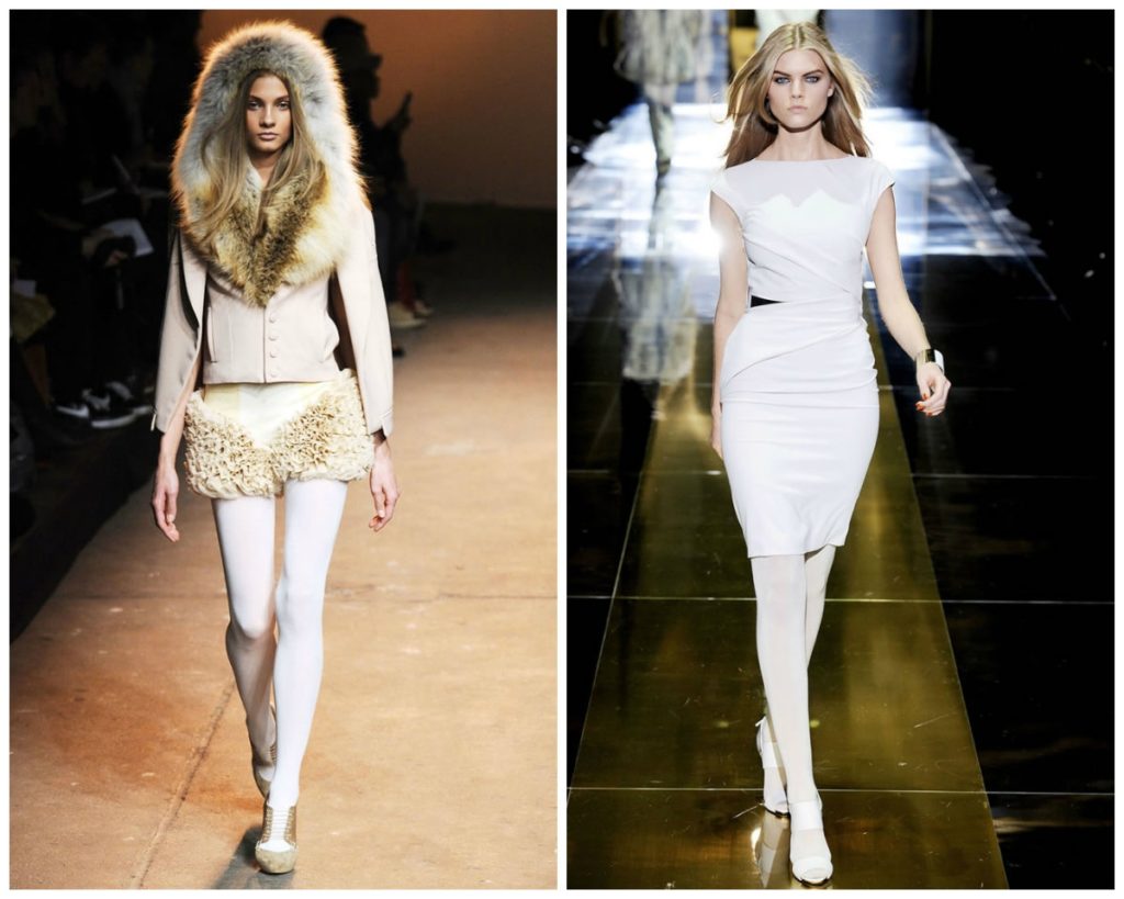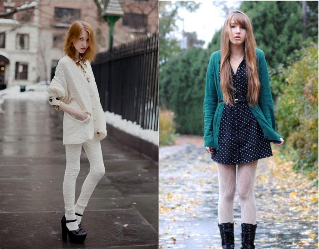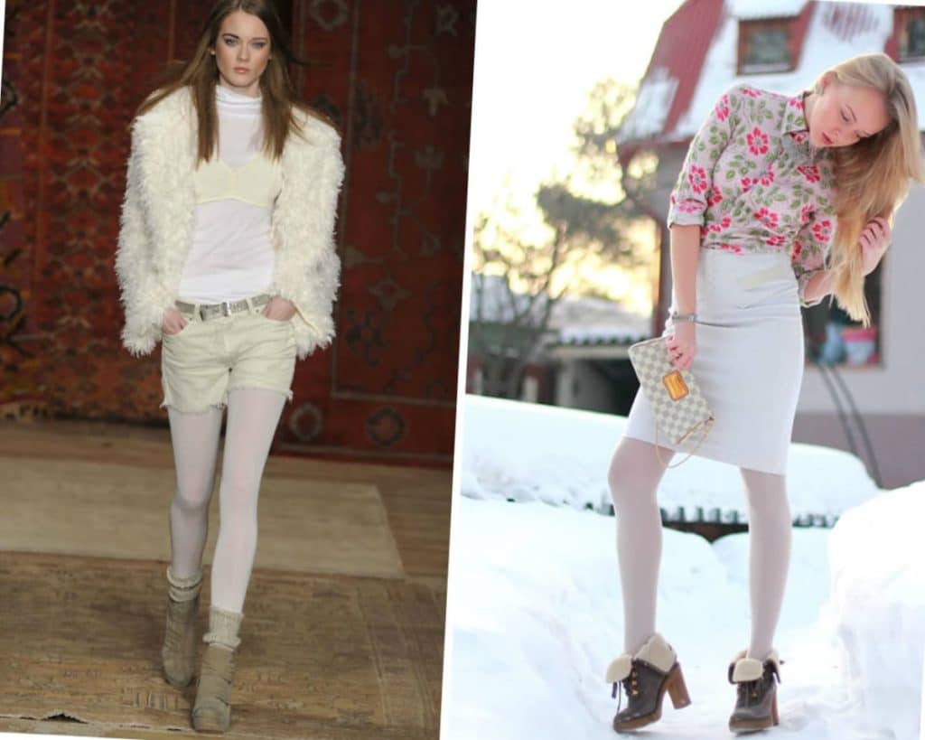 White tights are a fairly fashionable version of tights in the west, but unfortunately, in our country this type is not very popular. Because it’s quite difficult to pick up clothes for them, and white tights invoke associations with little girls.