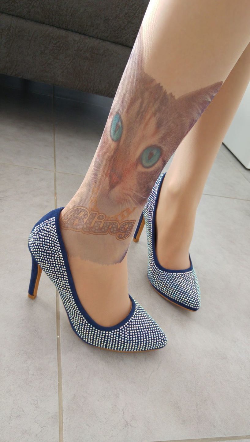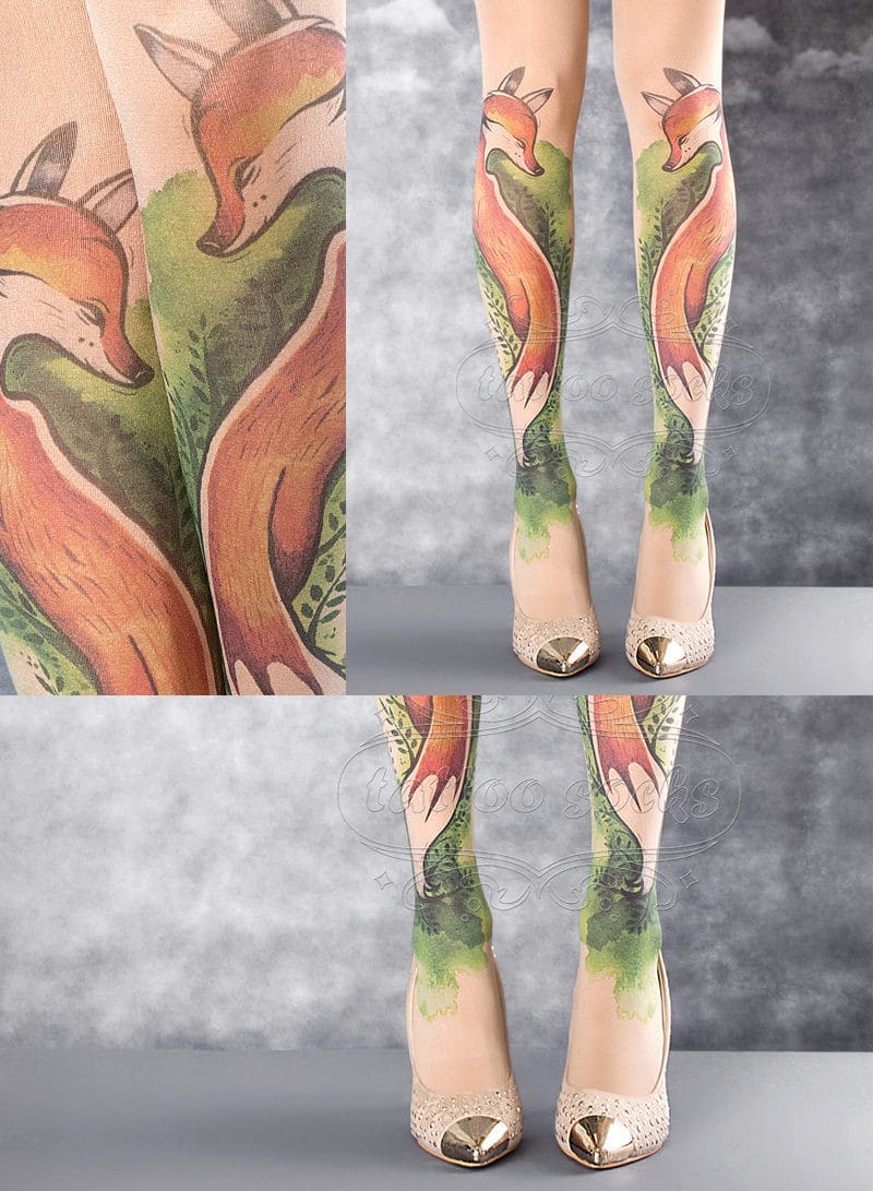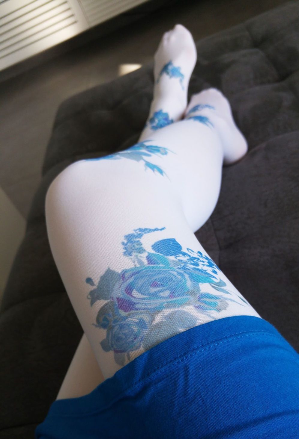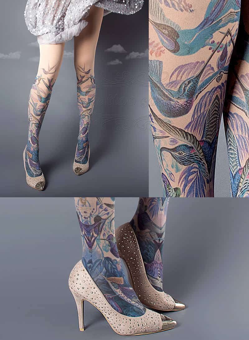 This look is suitable only for young girls, for everyday style. Tights TattooSocks can only be combined with a plain, not bright top.
