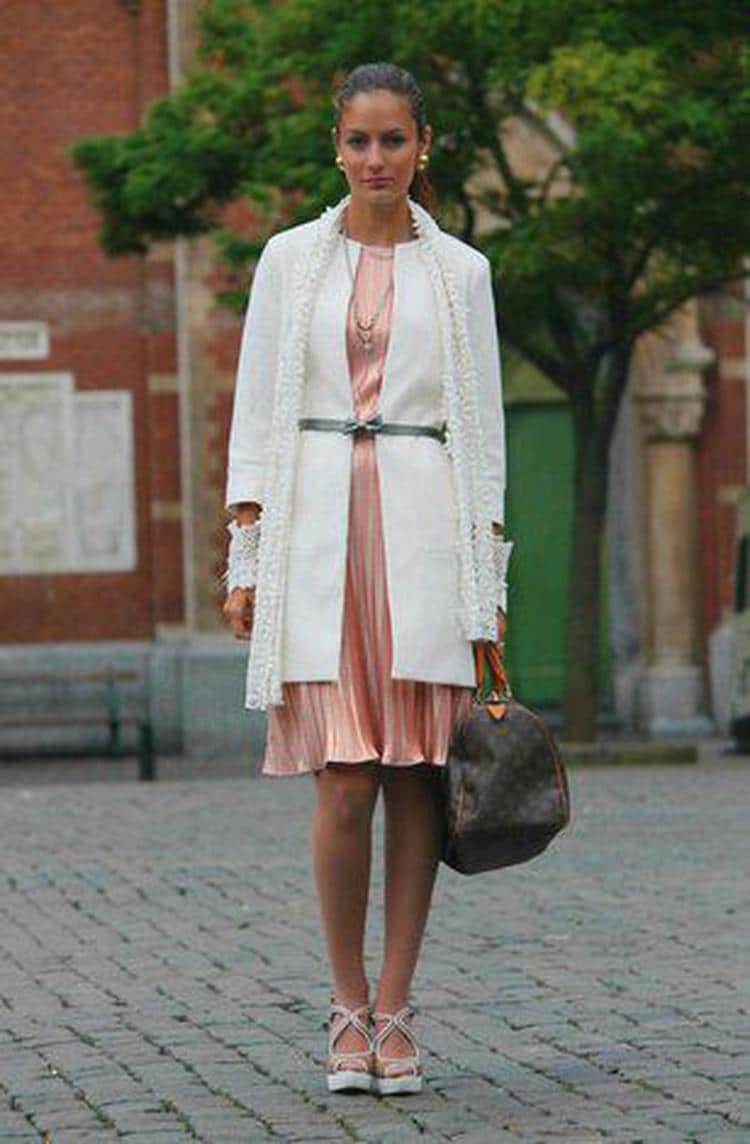 This look should be worn with a concise top, without a bright catchy print. And in the color category, black, gray, white, and also beige are good options.