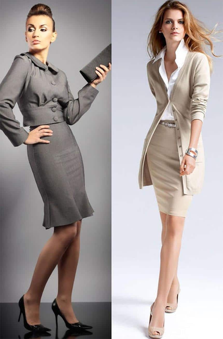 Also, strict business suits in gray, beige color are perfectly combined with body tights, giving the image of elegance.
