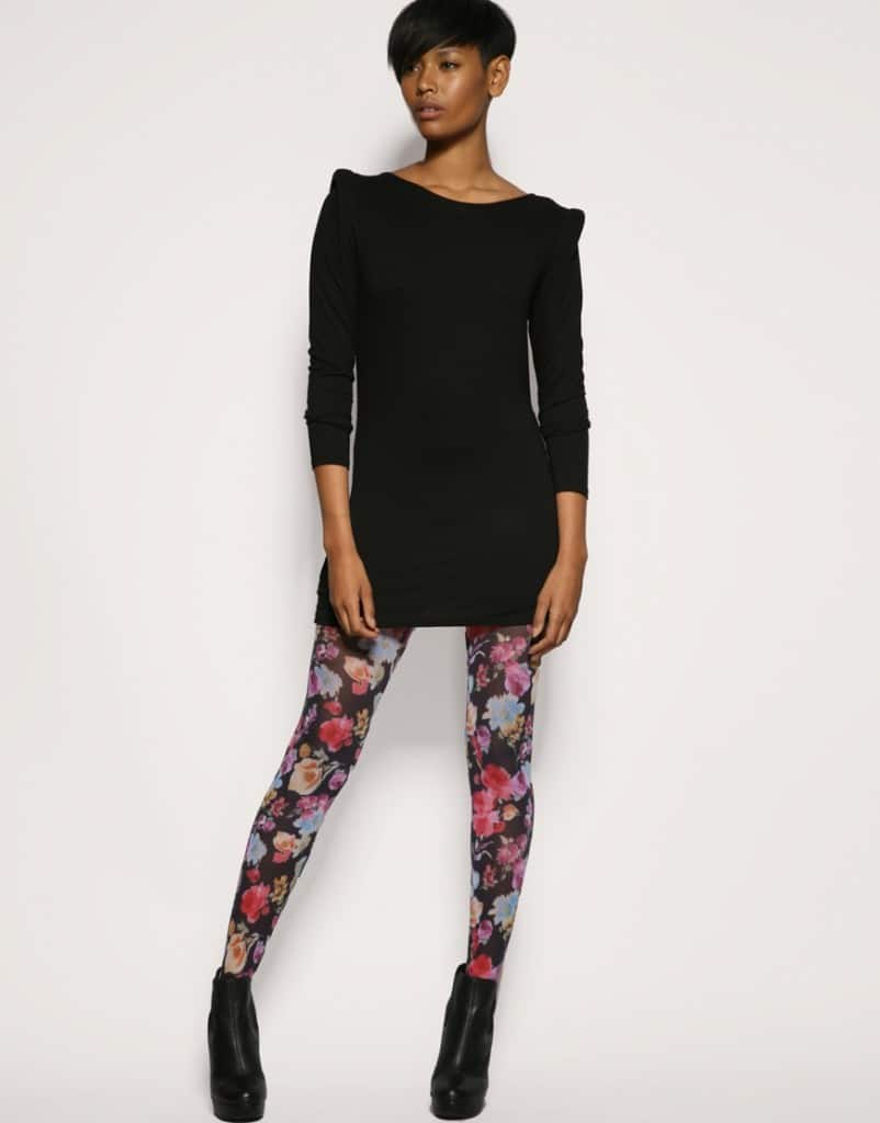 The most interesting type of pantyhose is printed pantyhose. The print can be different, from peas, to a pattern of flowers or just abstract drawings.