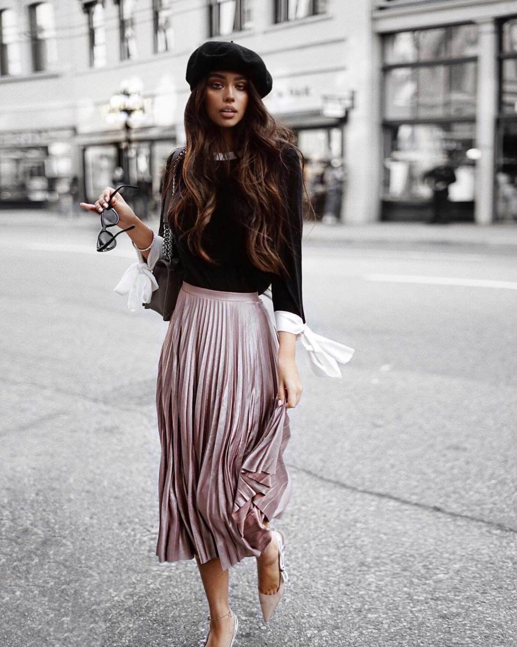 A pleated skirt has a certain magnetic charm that can attract increased attention to it. Her neat pleats are the hallmark of a pleated skirt, which allows her to participate in the creation of even the most demanding and stylish bows.