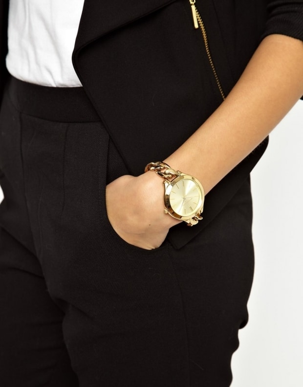 For cardigans or jumpers, an interesting solution to wearing a watch will be over the sleeve.