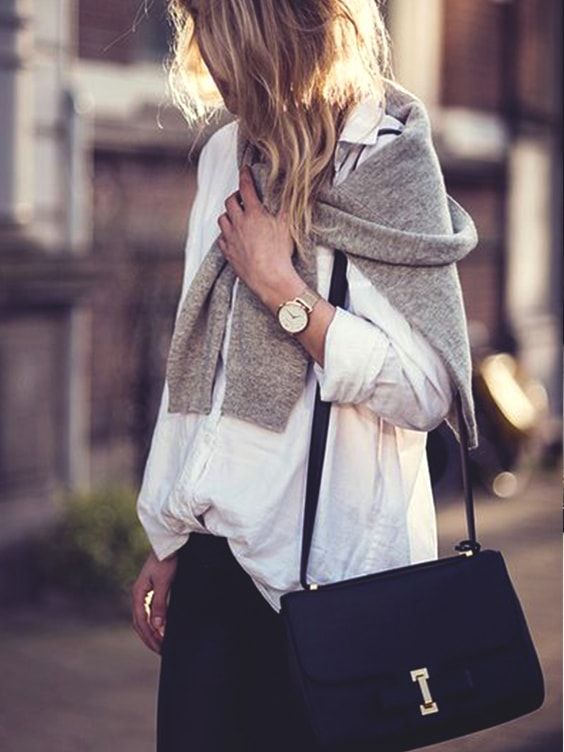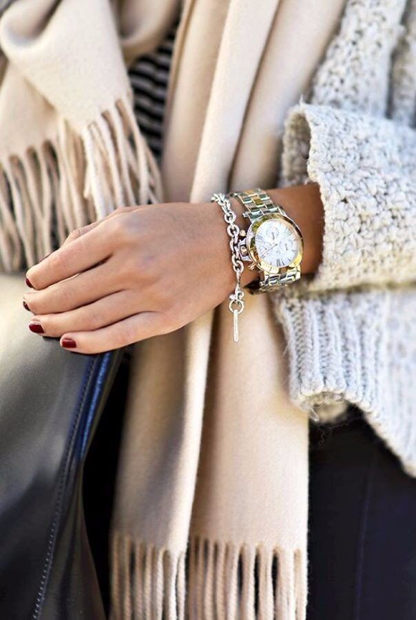 Women's watches look very feminine with sweaters, volume knit cardigans. The choice of watches in this case is better to give in favor of large ones on a metal bracelet.