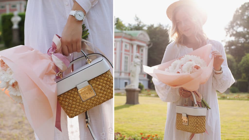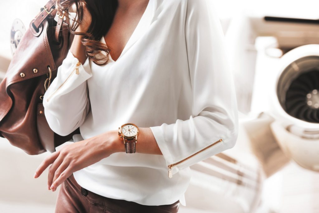 Watches go well with light flying patches or delicate light suits. In this case, it is better to pick up the same sophisticated models with a white leather strap or metal bracelet.