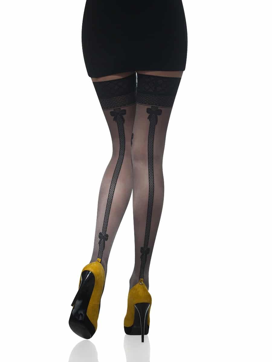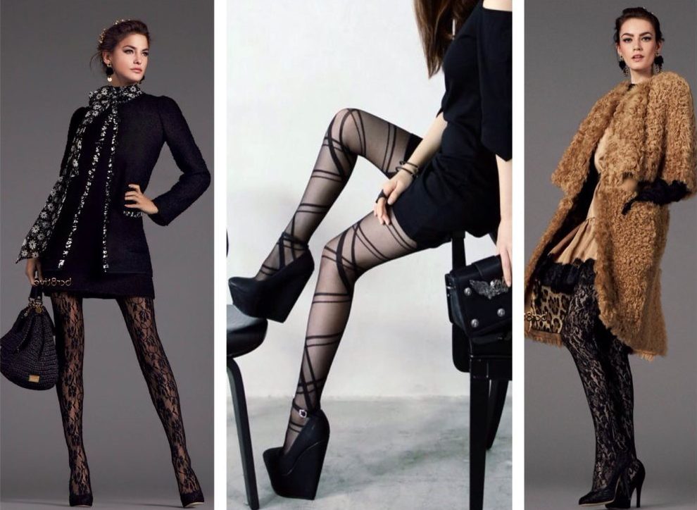 The same goes for print. Some stockings practically do not differ from ordinary tights, having a plain black or flesh color. Others have a pea pattern, lacing, has lace openwork or red, blue, white and a different color.