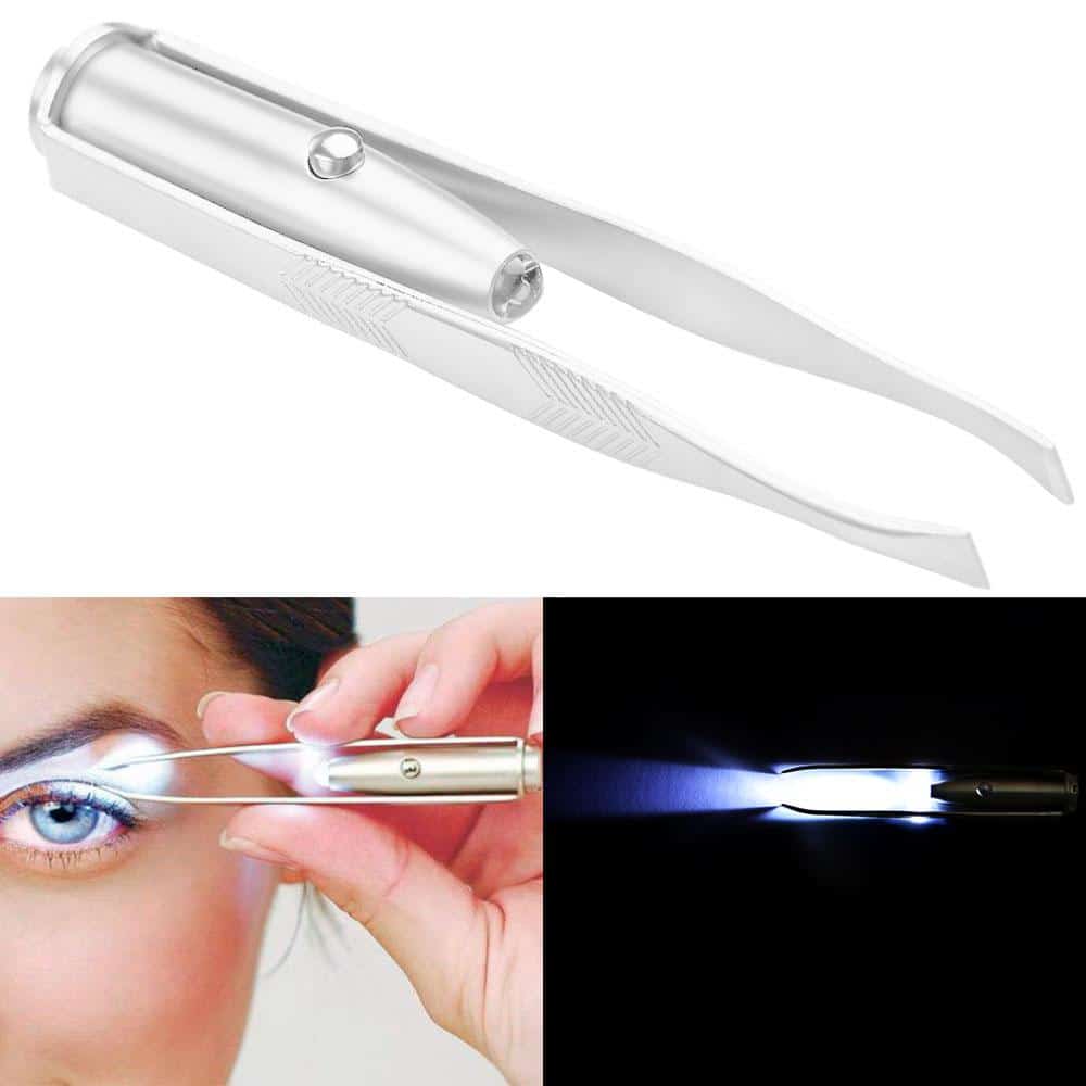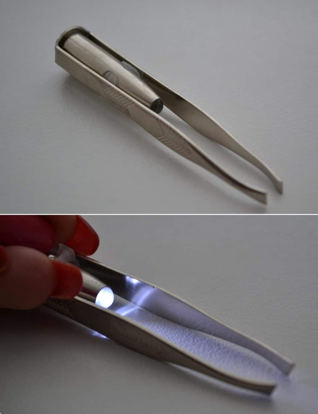There is also a very convenient version of the tweezers, with a built-in flashlight in the middle of the tongs. Such a flashlight perfectly illuminates all small hairs, which allows for high-quality correction.