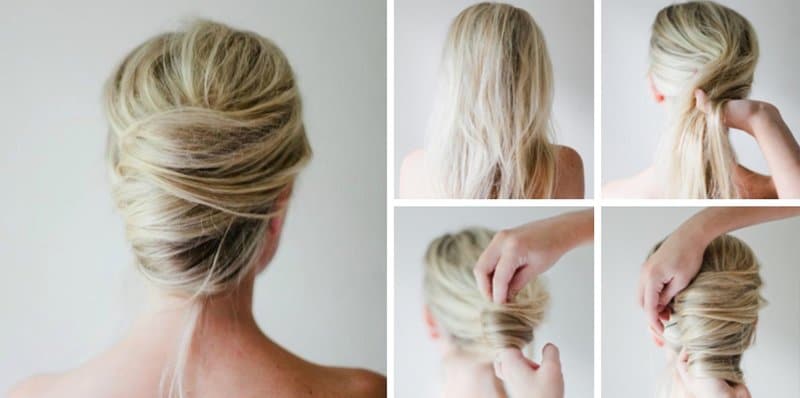 Make a light comb over the entire length of the hair, then stretch all the hair and twist it with your hands from the ends to the back of the head. Then fix the hair with hairpins on the sides so that the hair does not fall.