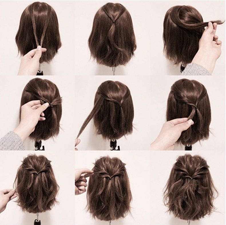 The easiest hairstyle for short hair - this is with the help of an elastic band. Put on the rim, and all the hair that remained behind the rim, wrap it around it, as indicated in the picture.