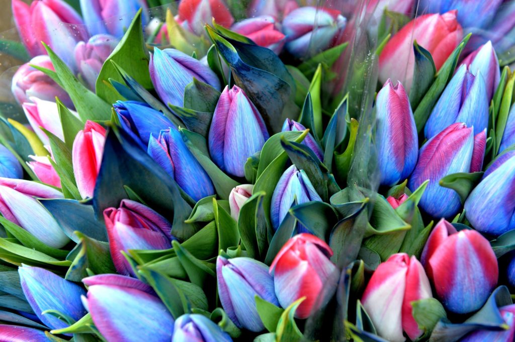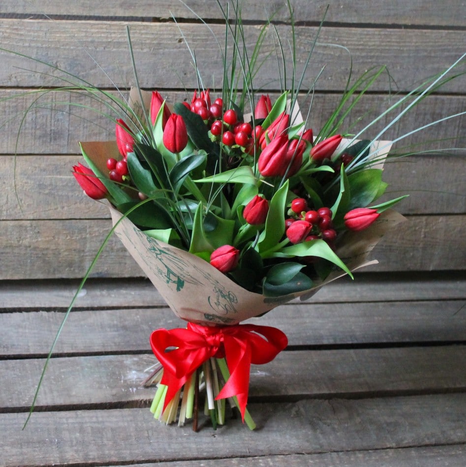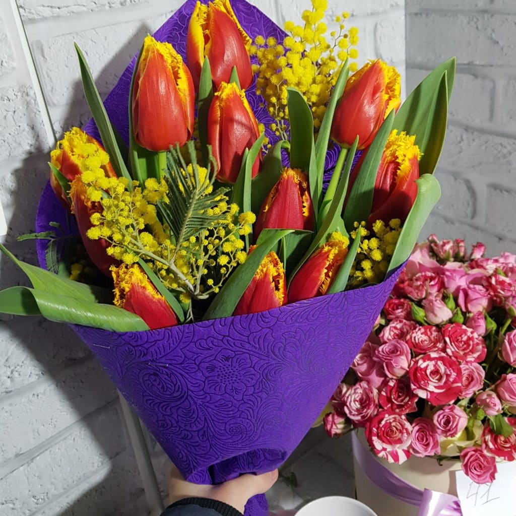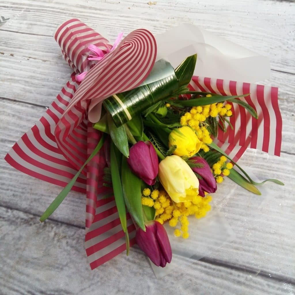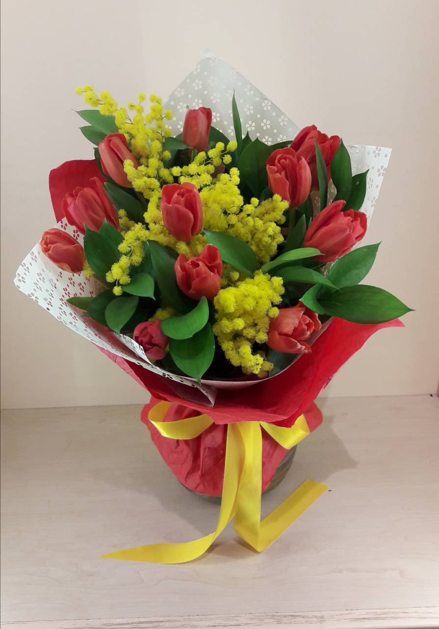 Often you can find bouquets of tulips with mimosa.