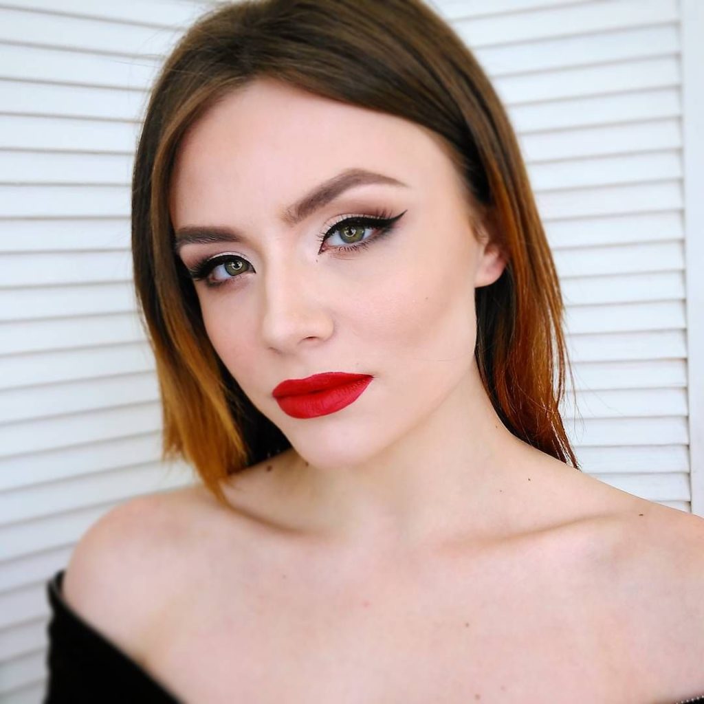Makeup in a restaurant involves a less vivid make-up than in a club. Your makeup should have one bright detail and it is advisable to focus on the lips. Choose lipsticksuitable in tone to your skin. It can be red shades, burgundy, plum and other bright colors of lipsticks.