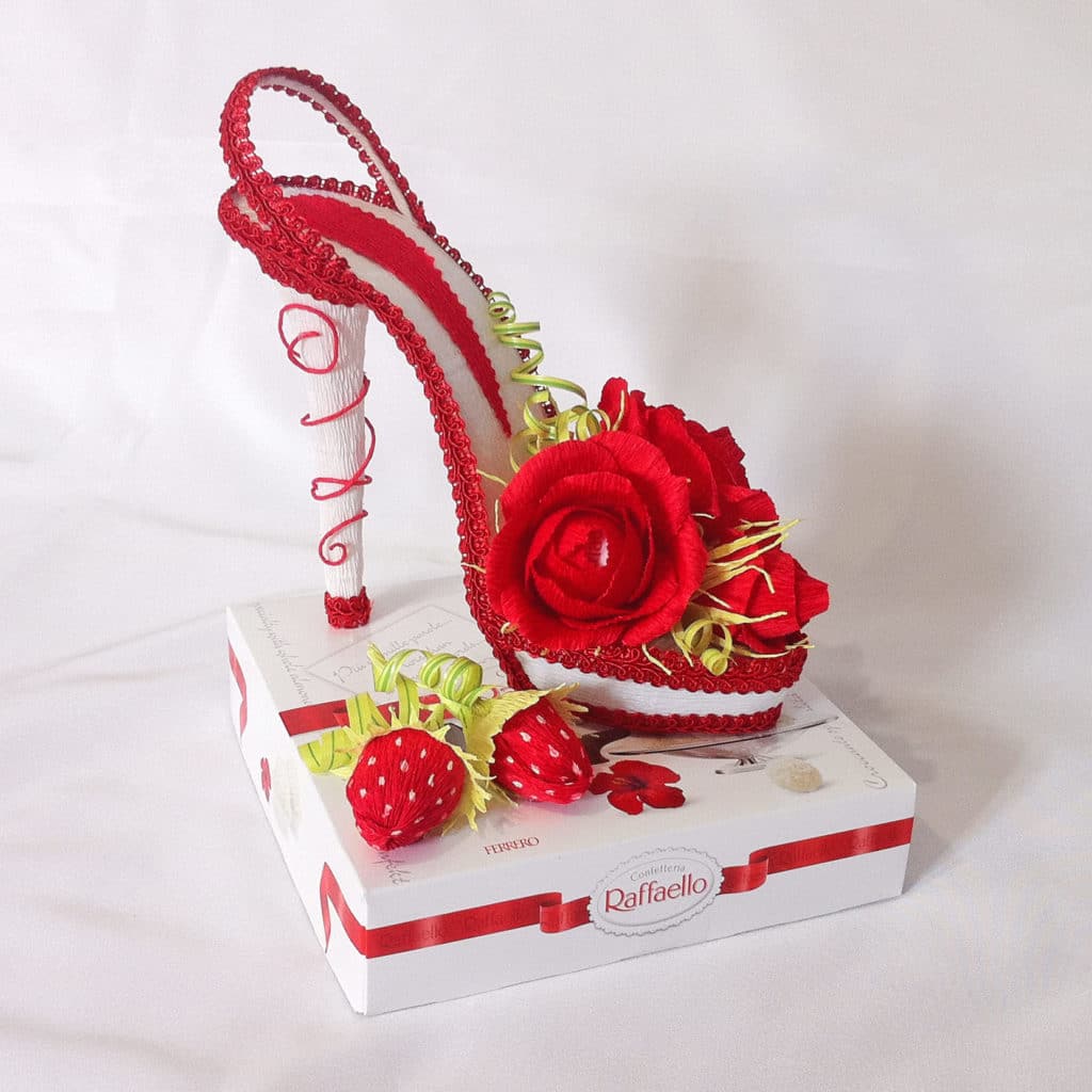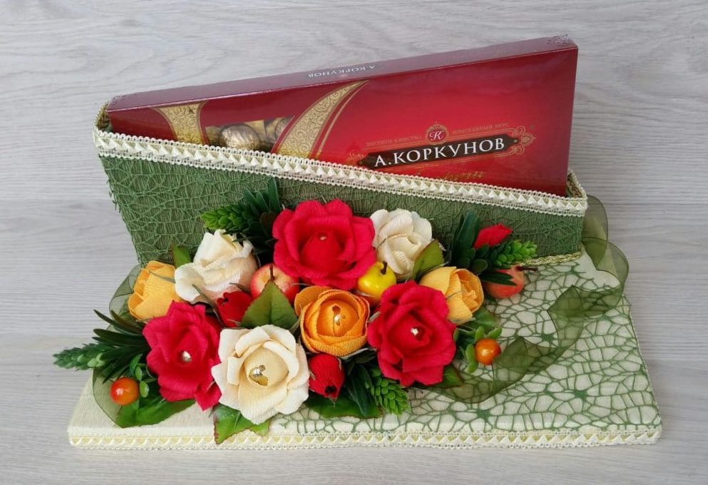 Sweets give, as well as just a separate gift, and accompanying presentations to the above options. Especially such surprises will be welcomed at work by female colleagues.