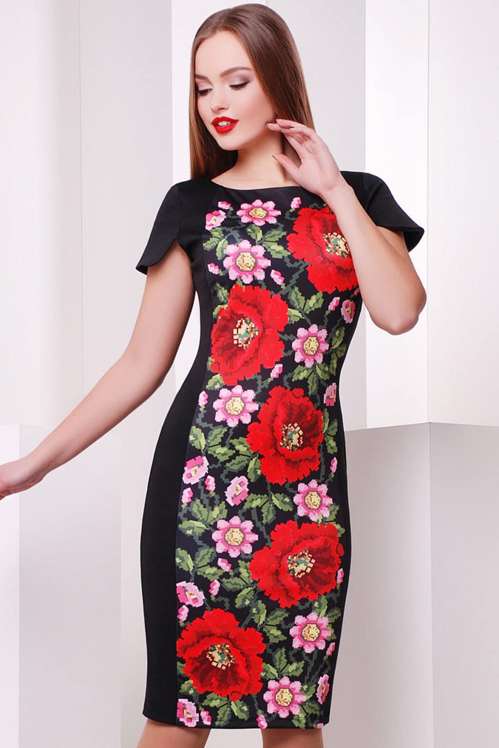 Or fitted dress with flowers.