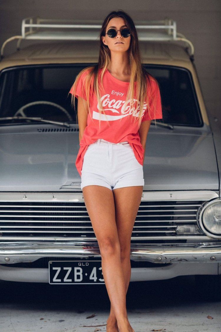 A top and white shorts are the most common summer option. The advantages of this image is that it will not be hot for you, because how can you not wear white shorts in summer.