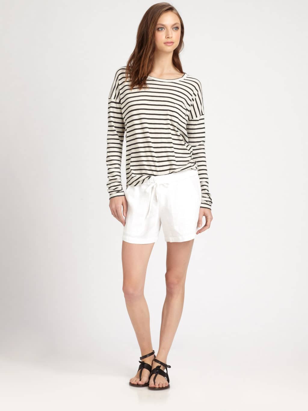 White shorts are a gentle and great option for a girl. Although girls are considered more feminine in a skirt, white shorts will be the best combination of style and femininity.