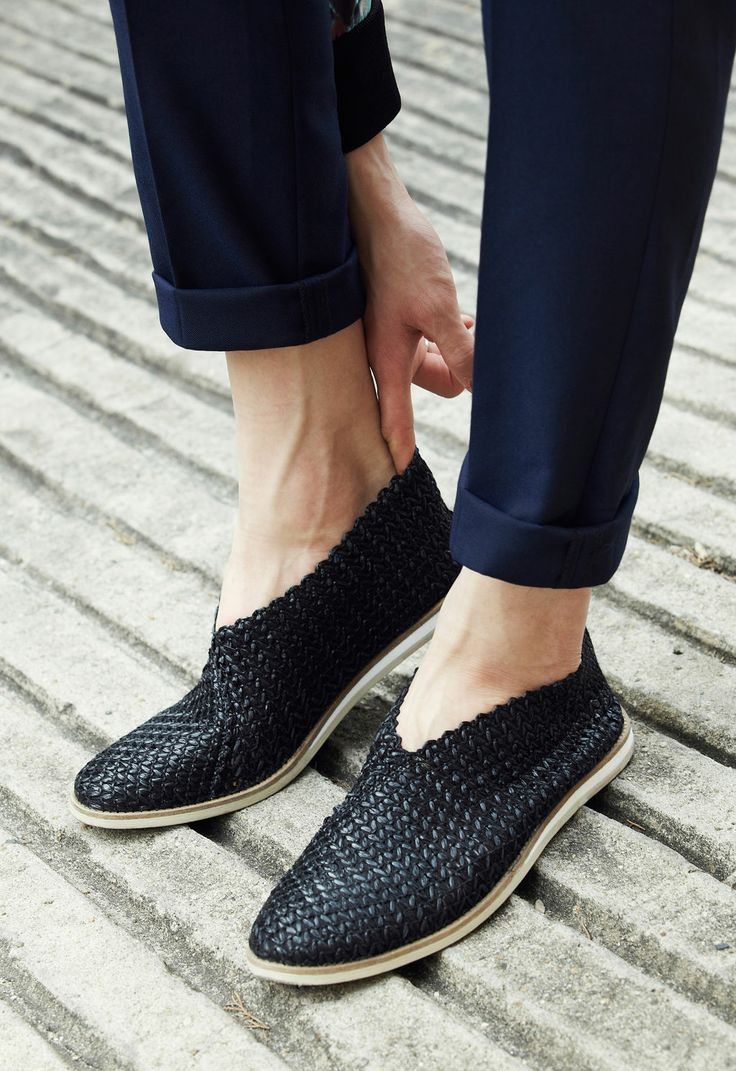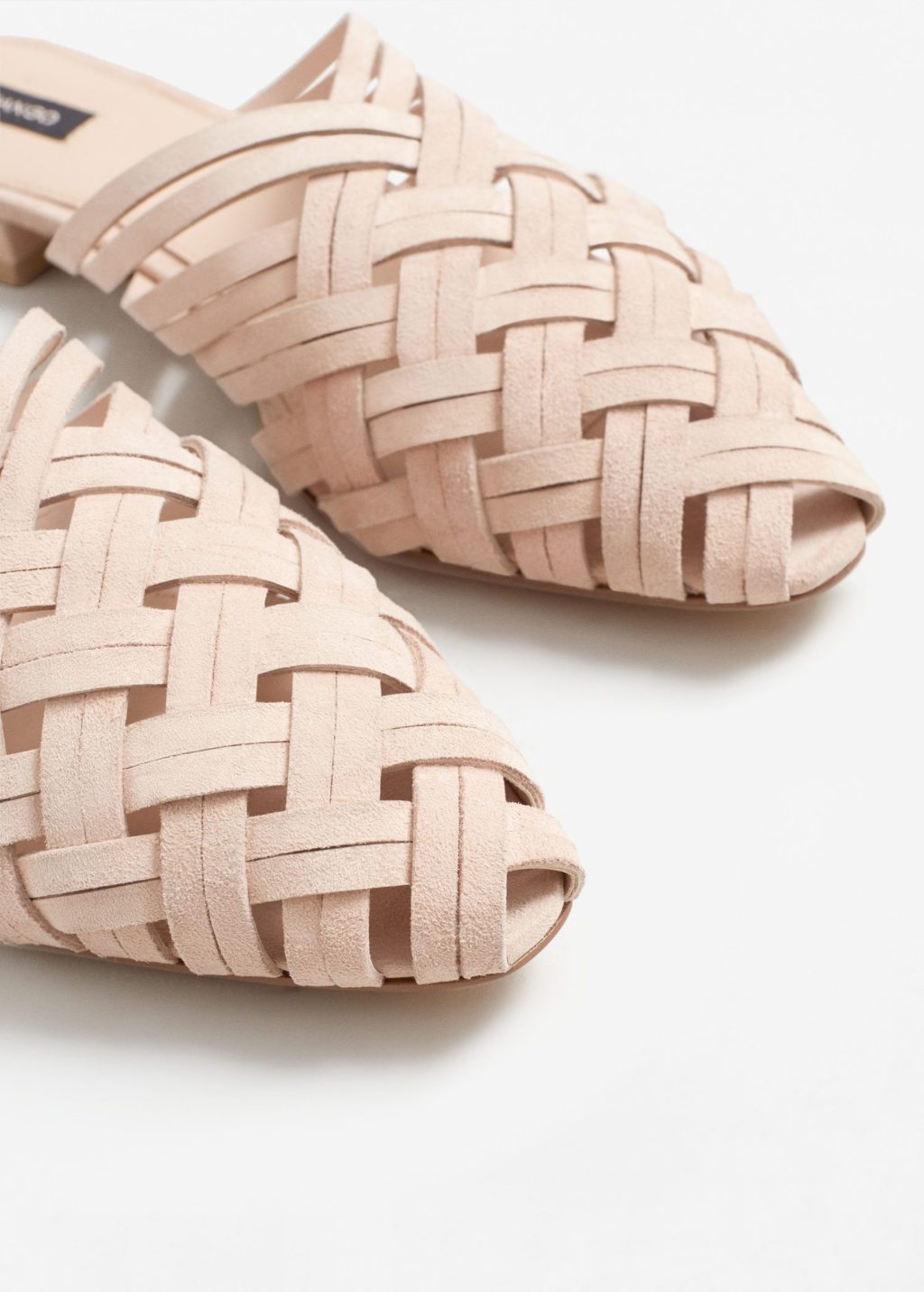 The trend of wicker shoes came to us from bags. The weave can be straw, from thin leather plaits, fabric weaving.