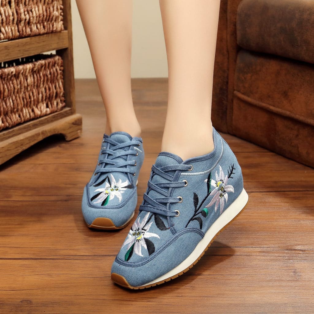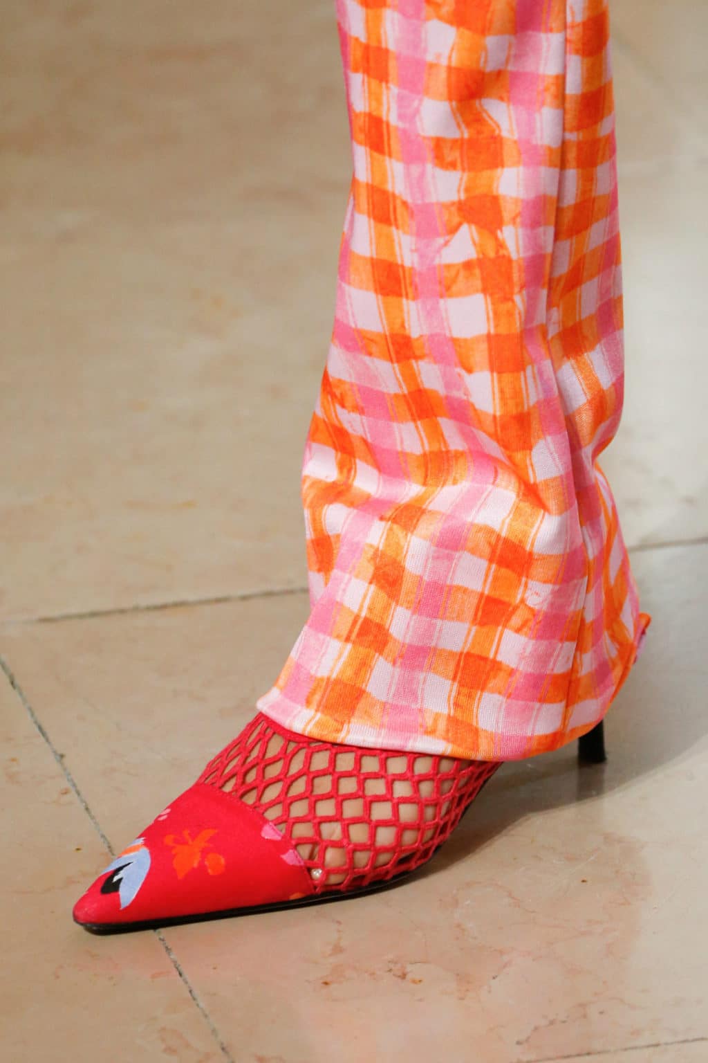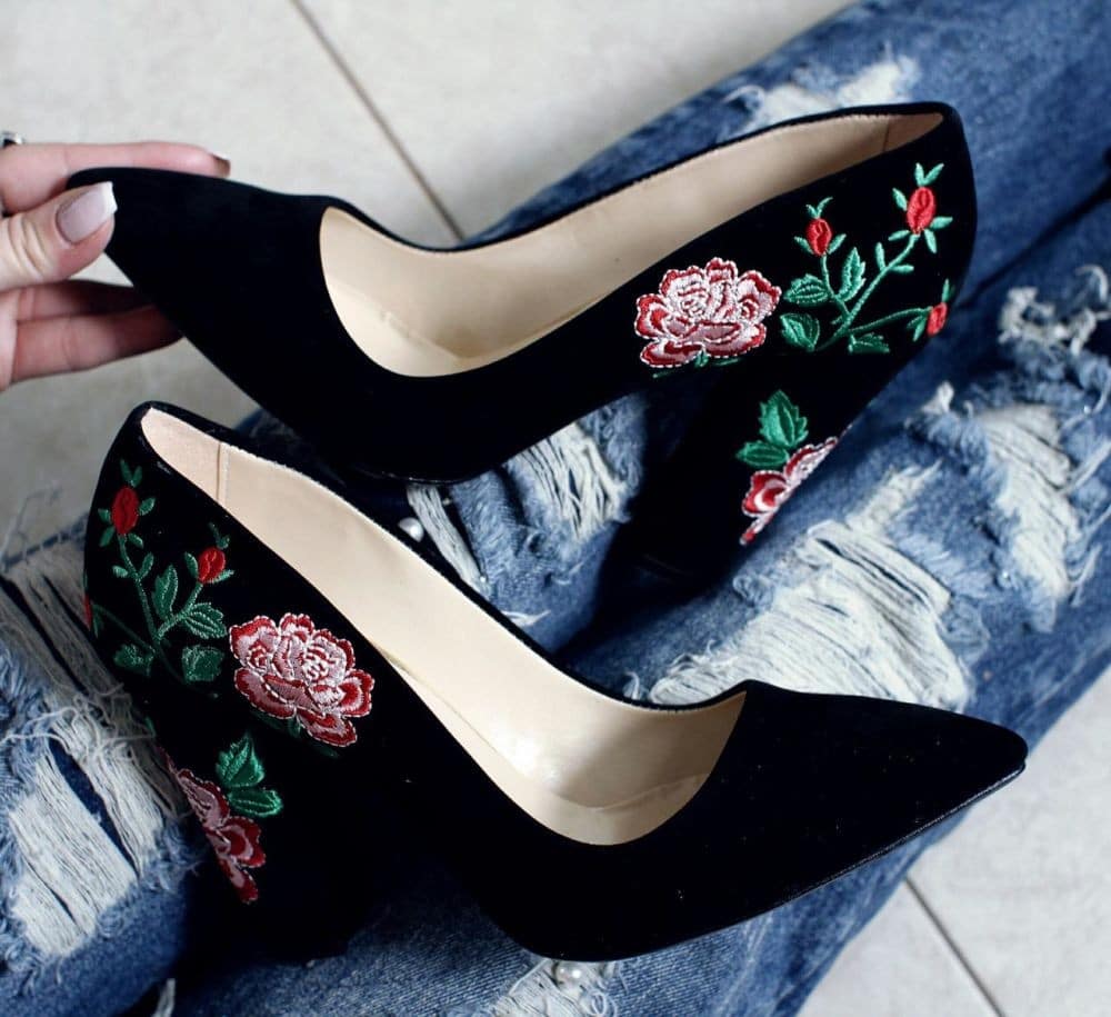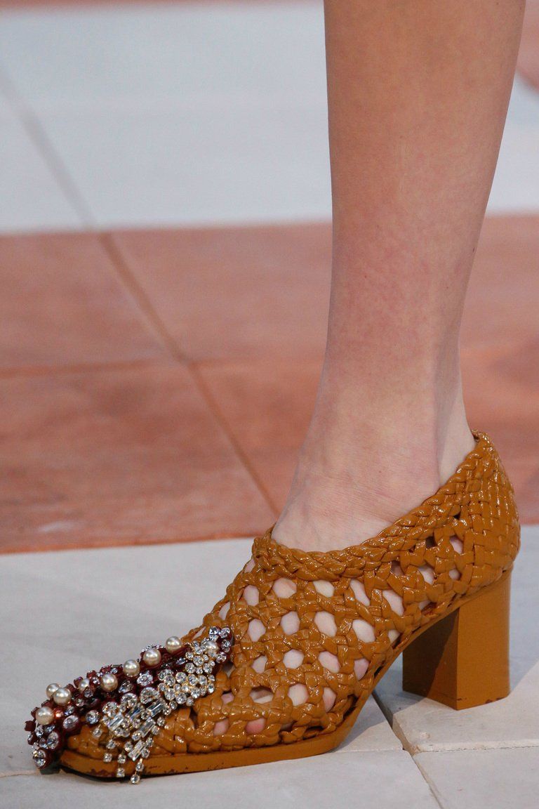 This season, embroidery from clothes was pumped to shoes. Designers used embroidery on boots, mules and sneakers.