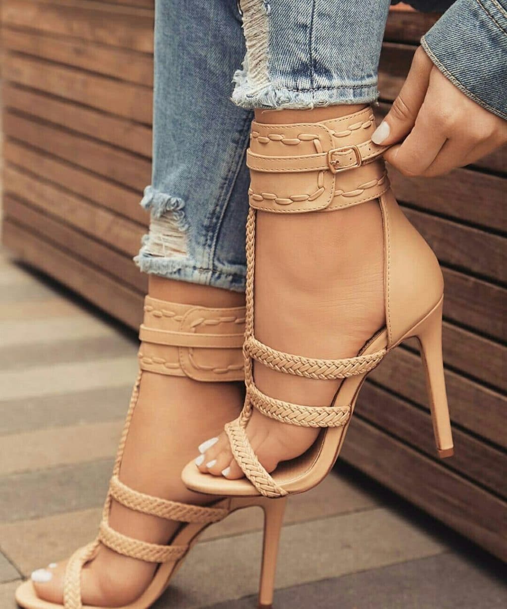 Shoes with harnesses and ropes look intriguing and sexy. Moreover, the ropes themselves can be varied: the classic weave of the rope, leather harnesses, twisted rope, etc.