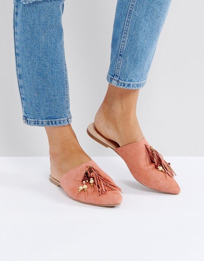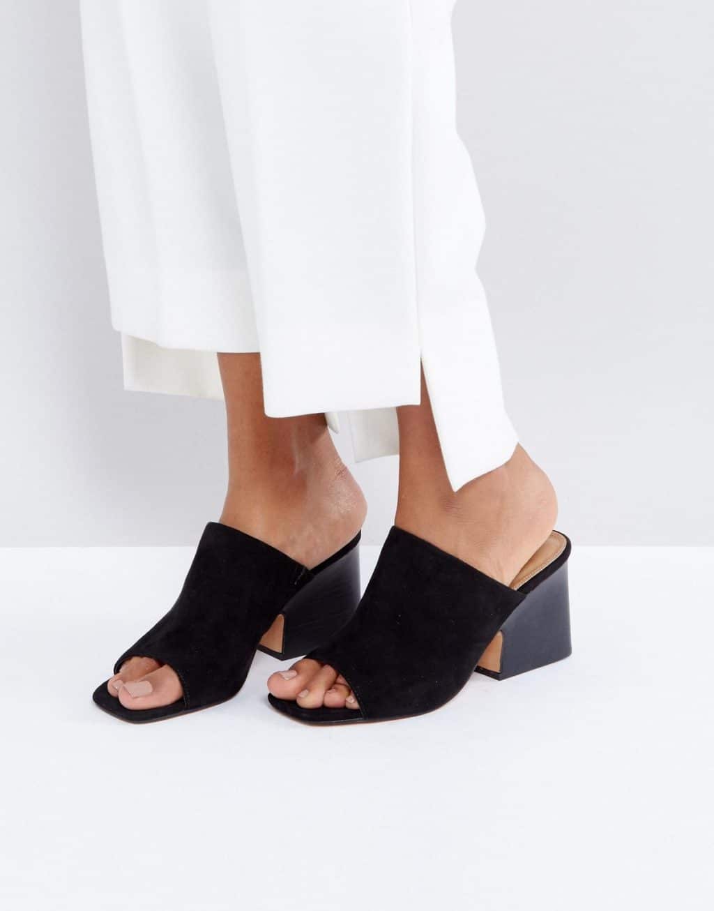 Designers presented mule shoes both on a heel and without a heel. In what variations they were not presented.