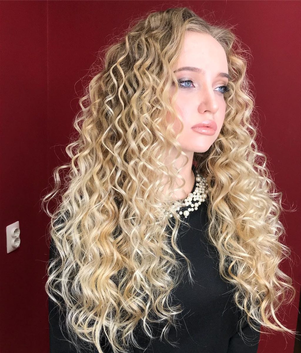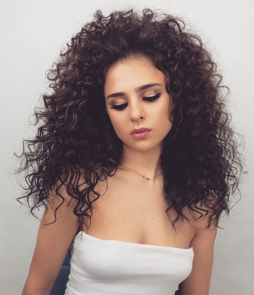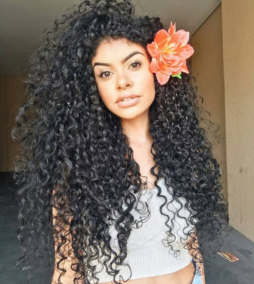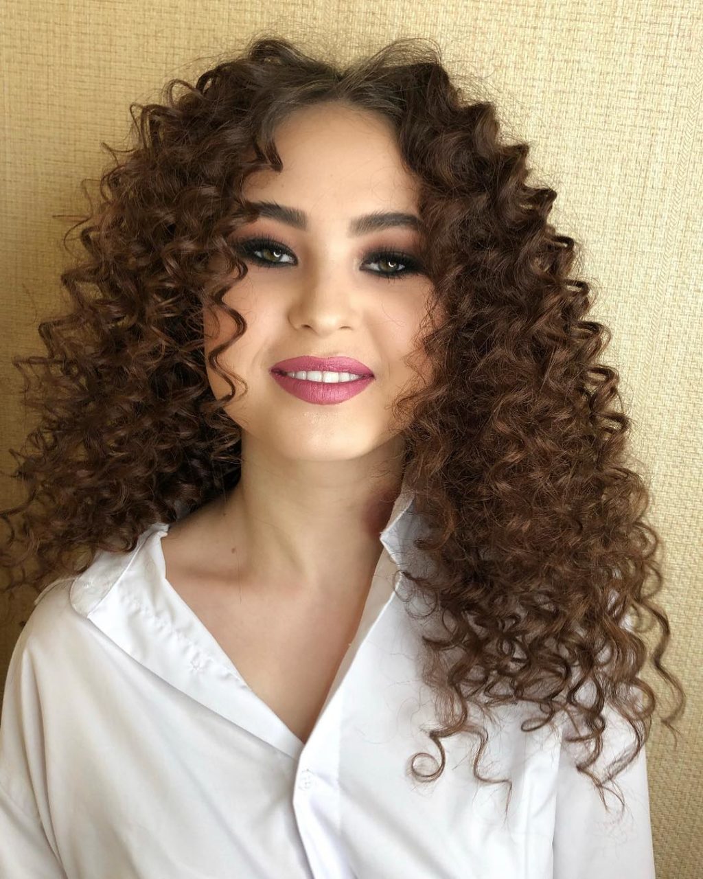 To achieve a chic look, girls with long hair should wind their hair in afro curls. Long and thick hair will perfectly rise, creating an unusually beautiful and attractive look.