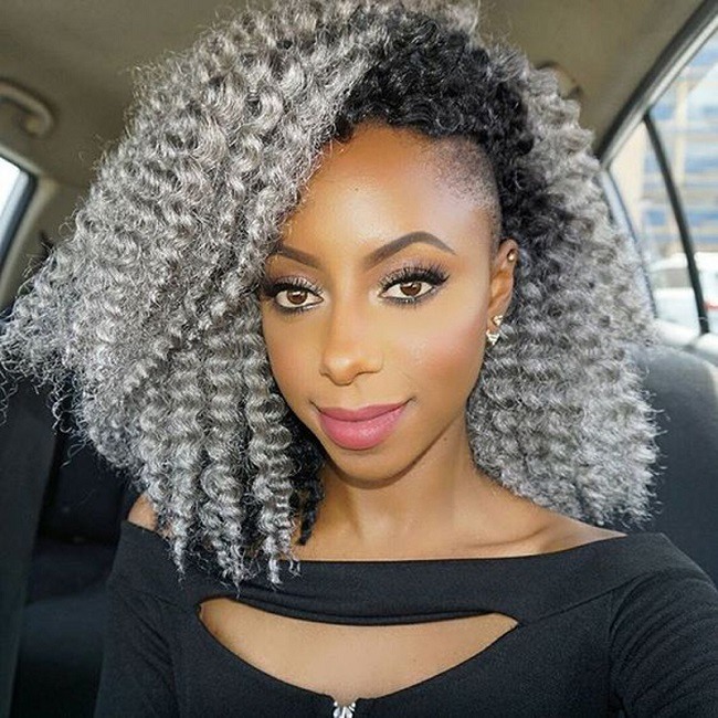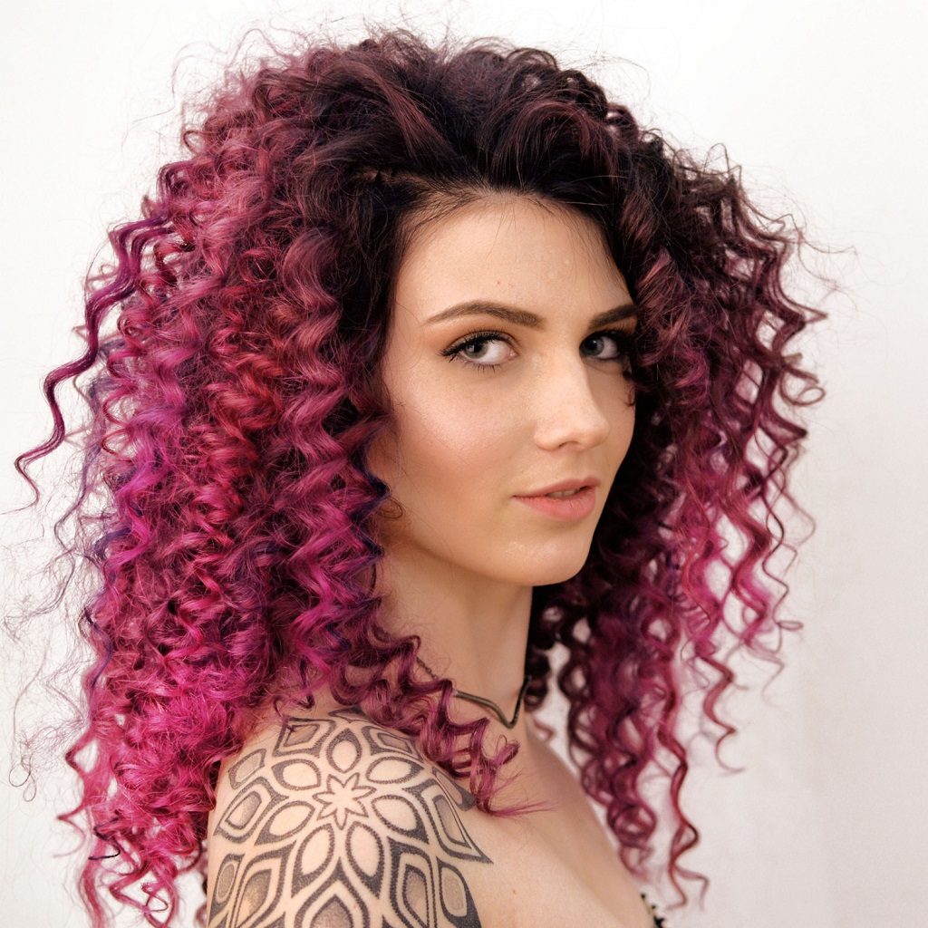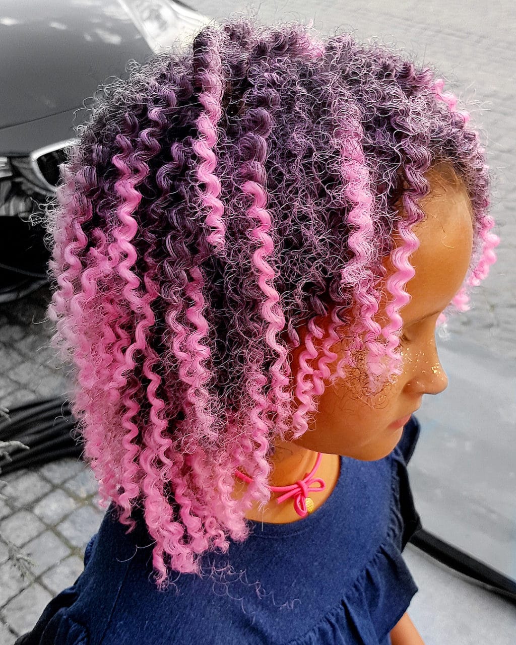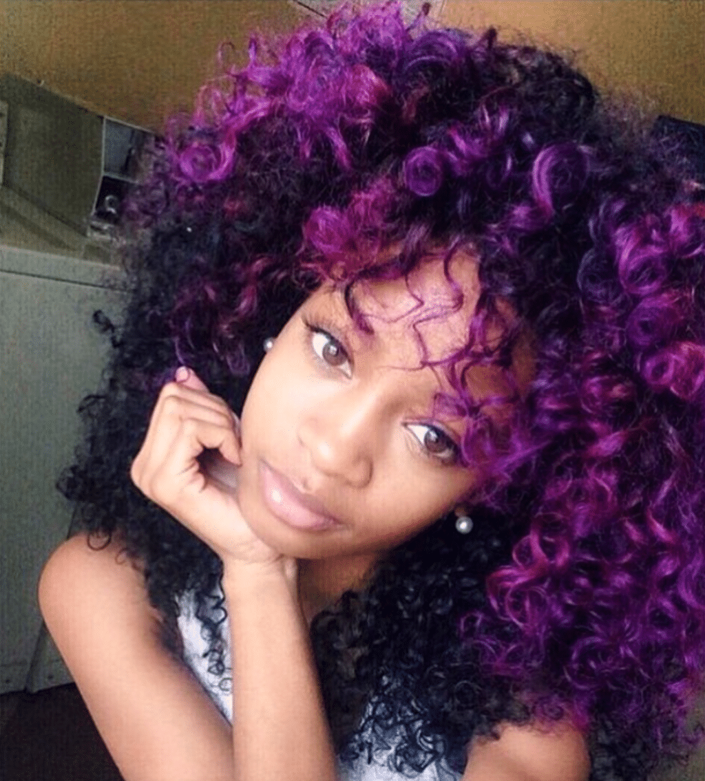 This type includes the standard look of afro curls, but they have a non-standard color. It can be purple, pink, white, green or multi-colored. You can also use the ombre painting technique, which will give you a very original look.
