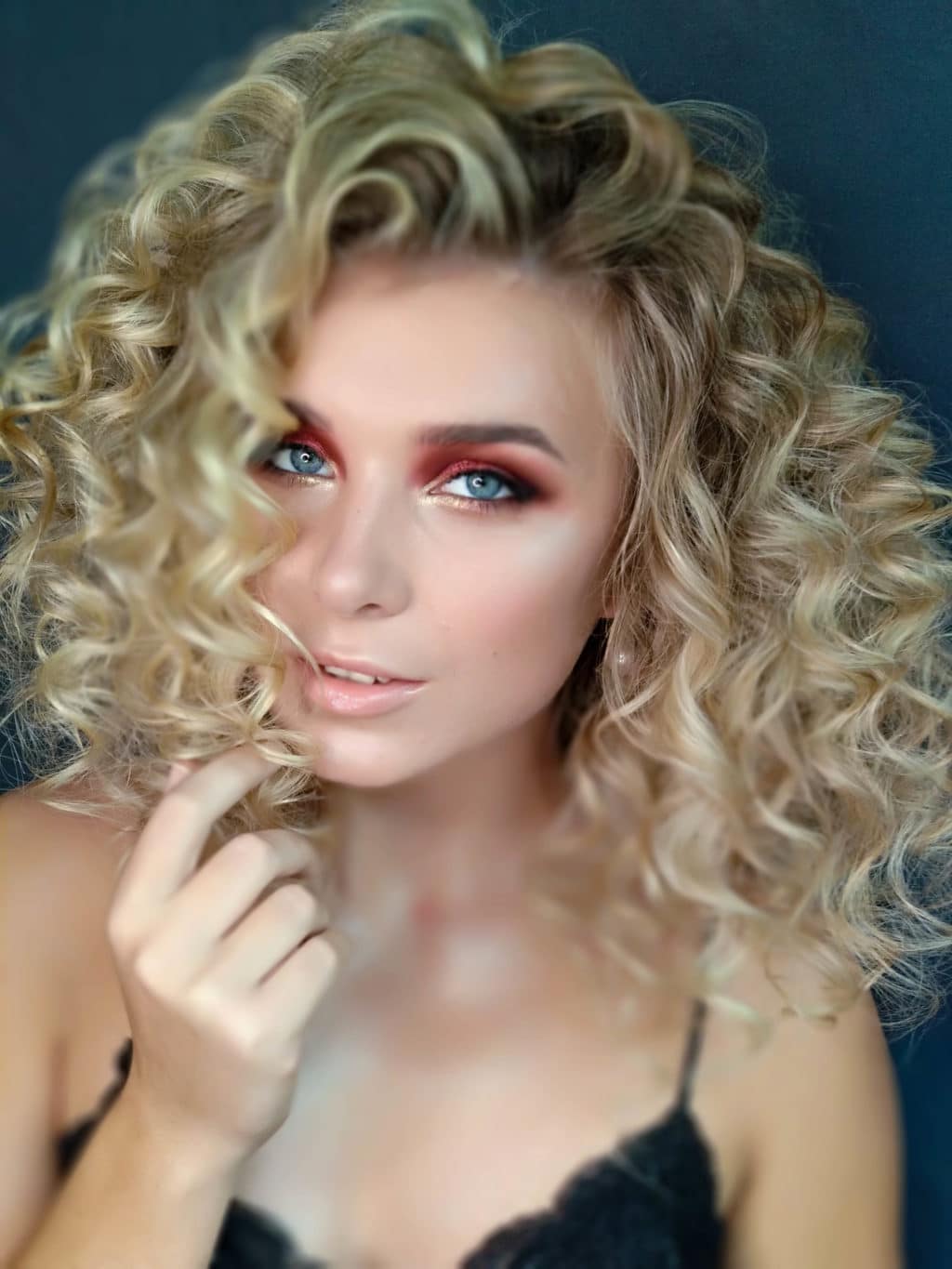 Small curls perfectly accentuate your face, and also focus on the neck and décolleté. Remember this when choosing this type of hairstyle.