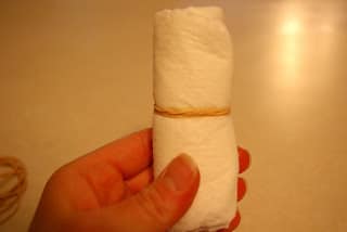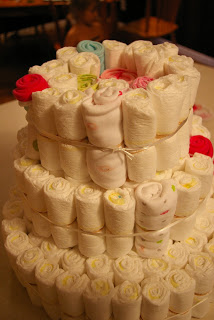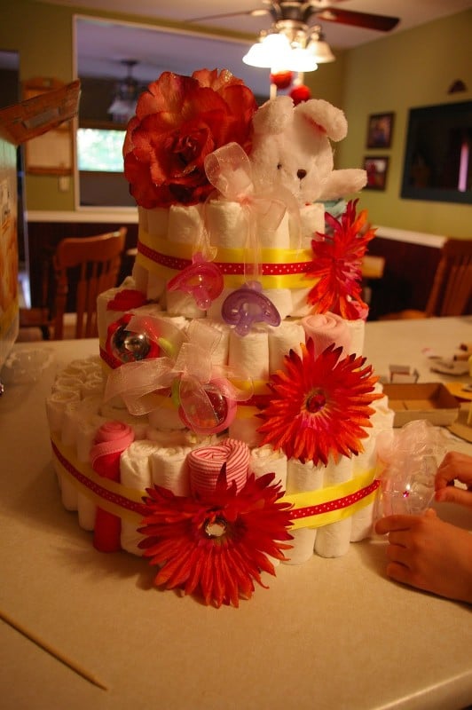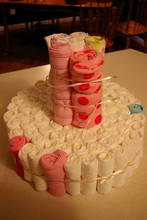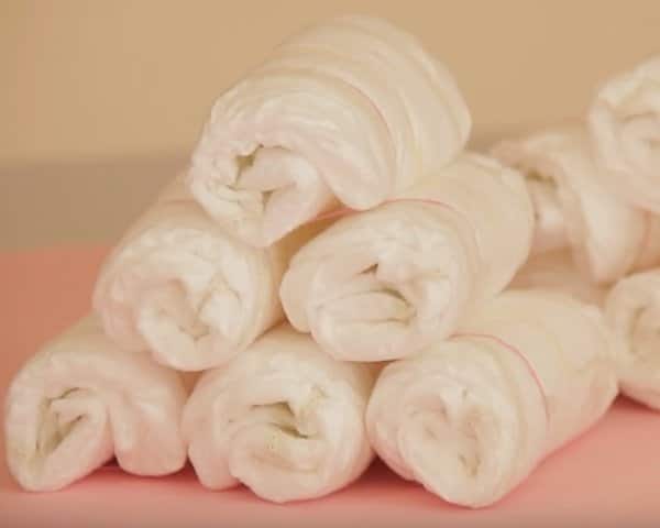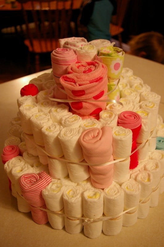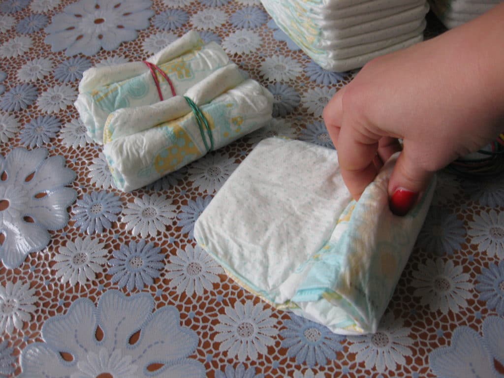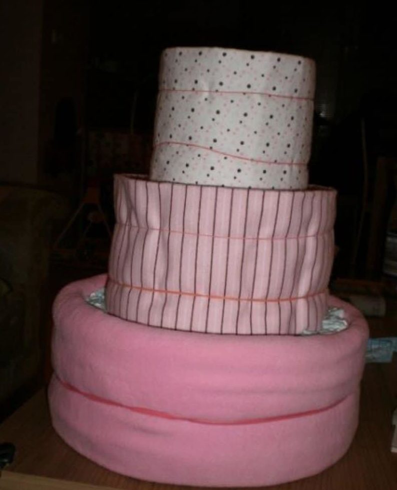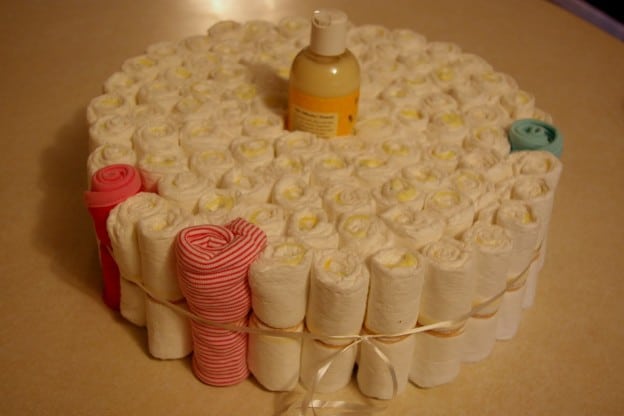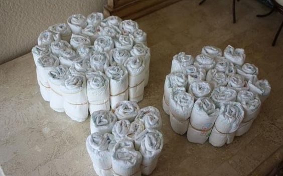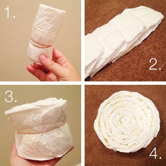 Practically the easiest and most universal method of forming a cake from diapers will be to make tubes of them.