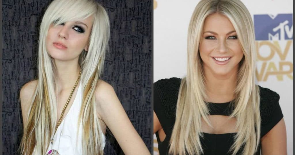 If you have too big, angular face, then the best option would be to make a bang and apply a haircut ladder. Such methods will help visually make your face smaller, and your hair will acquire a beautiful, lively look. Mostly girls with bangs, it is recommended to make a multi-layer ladder, with some changes in the bangs itself. Most often, bangs are chosen more direct or voluminous.