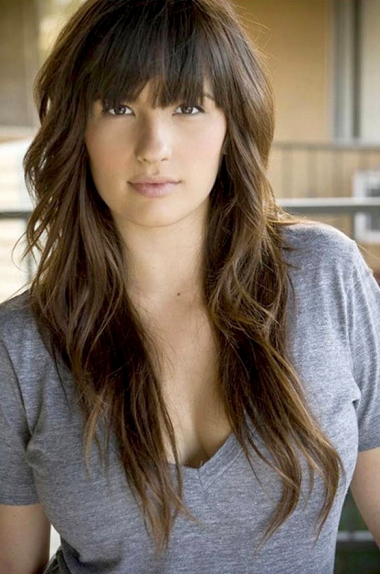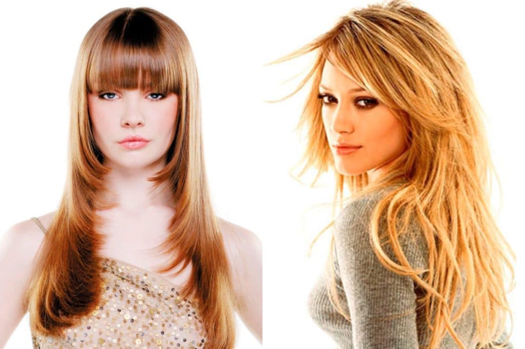 In another option, along with a ladder haircut, change your bangs, making it oblique, ragged, asymmetrical, elongated or gradedto smooth out facial features.