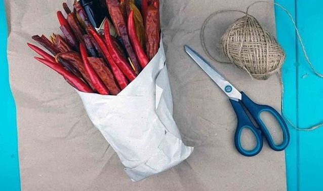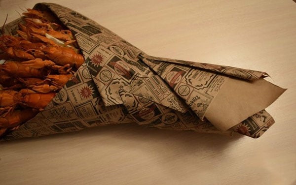 Now proceed to wrapping the bouquet with wrapping paper, not forgetting to tighten the tail itself with twine.