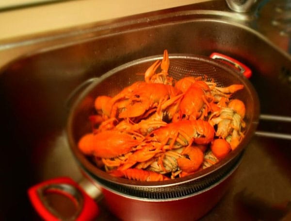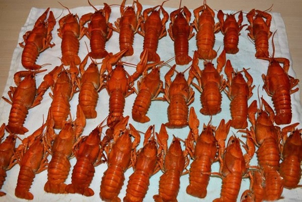 Boil water and boil all the crayfish in it, adding spices and salt to the water.