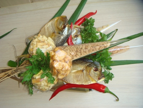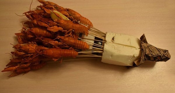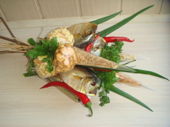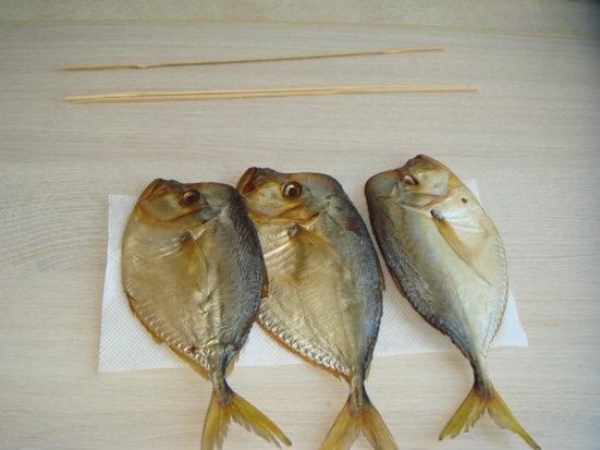 You can also add a few more fish, for the abundance of our bouquet. String the fish on wooden skewers.