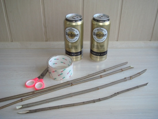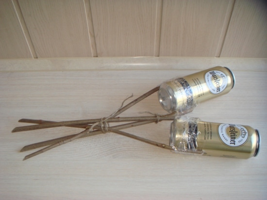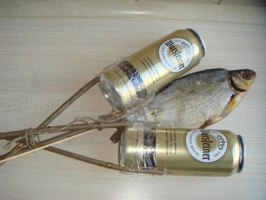 We stick a bottle of beer with a neck in penoleks and the free ends of wooden skewers.