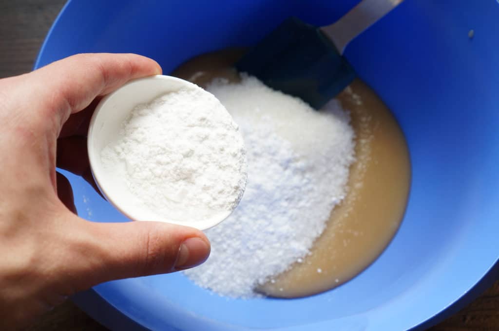 - When the syrup is ready, you need to add gelatin to it and remove the mixture from the heat. Beat the composition with a mixer at high speed for ten minutes. Then add a lemon, soda, and also vanilla sugar and beat for about ten minutes.