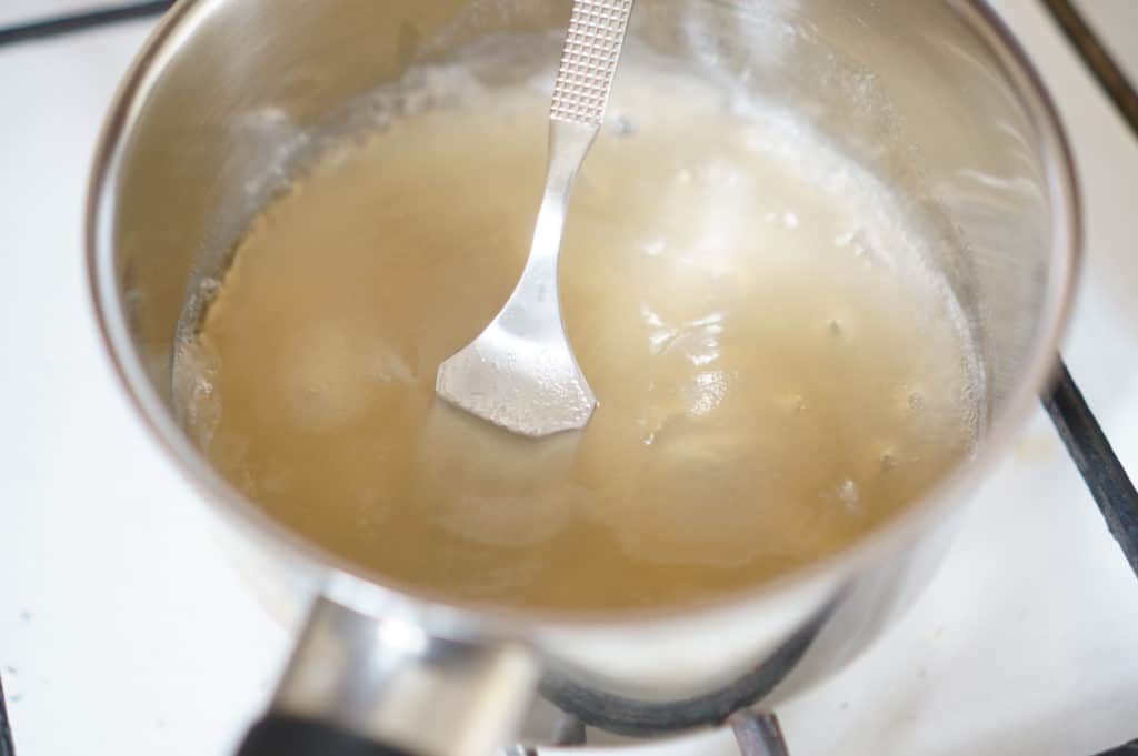 - On low heat, bring our mixture to a boil, detect for a couple of minutes and remove from the stove.