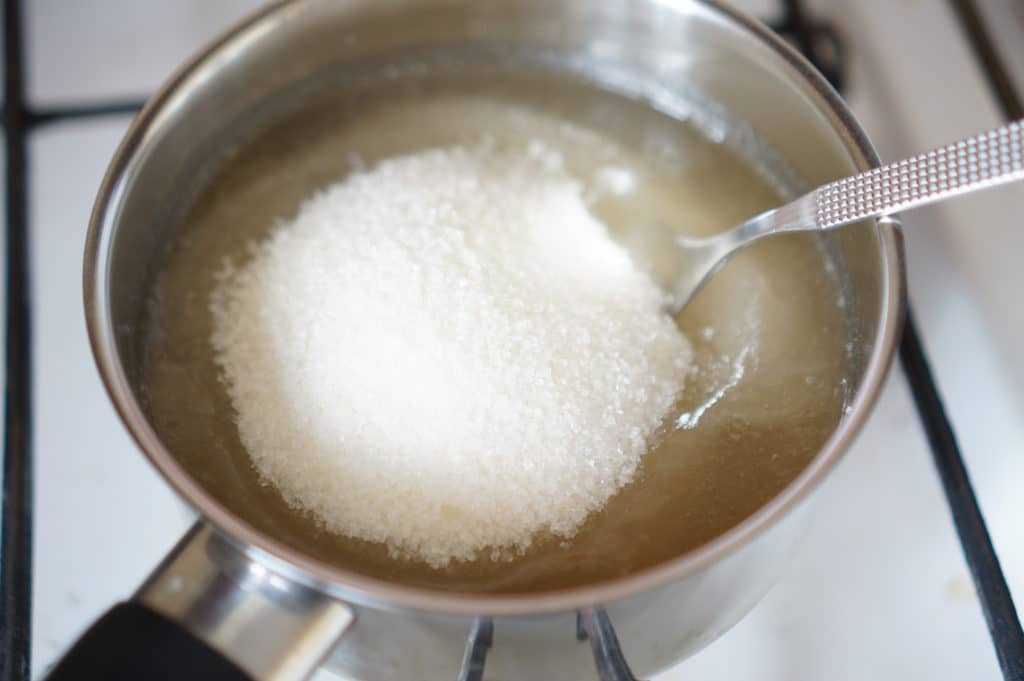 - After that, sugar and water should be put on low heat and constantly stirring to simmer for ten minutes.