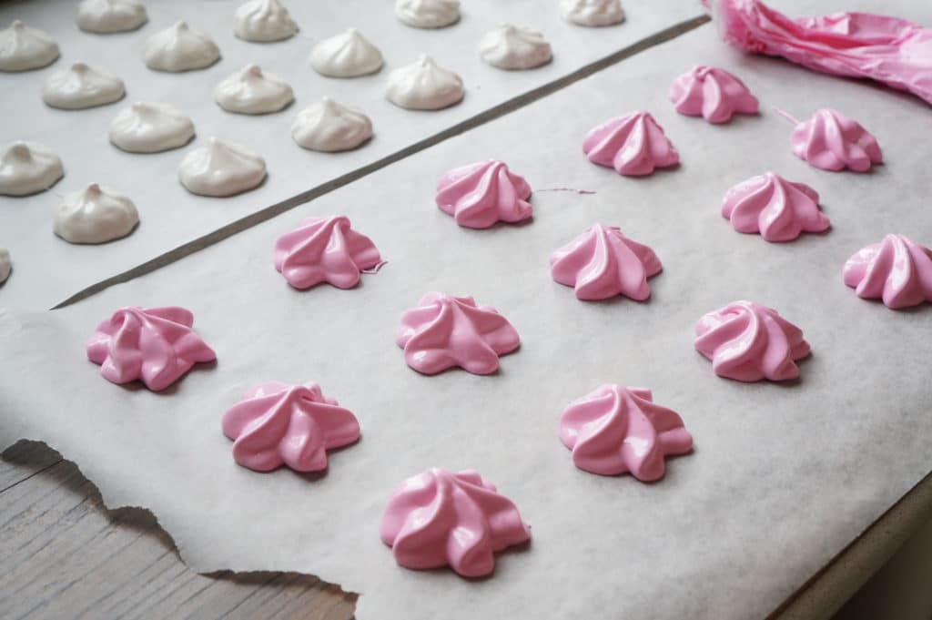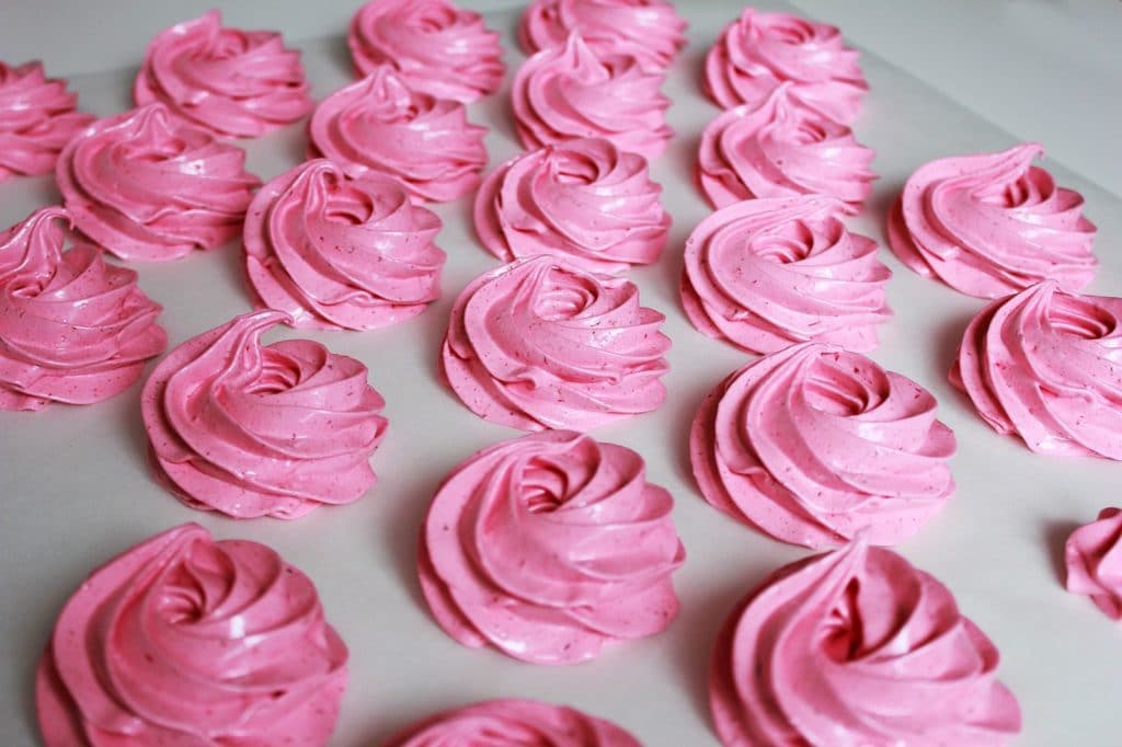 We collect the finished mass in a culinary syringe and place the mass on a baking sheet covered with parchment. If desired, food coloring can be added to the marshmallows.