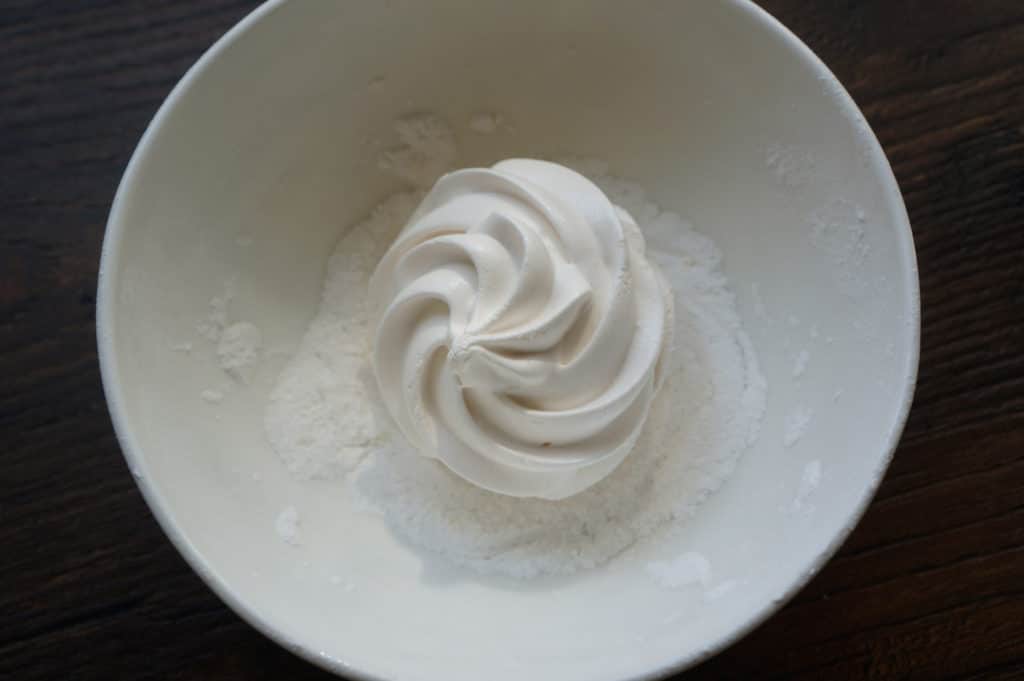 - Beat the whites with a mixer and add a lemon to them. Whisk for a couple more minutes and add whipped cream to it. After gelatin, you need to fill in with cold water and leave for one hour until complete swelling.