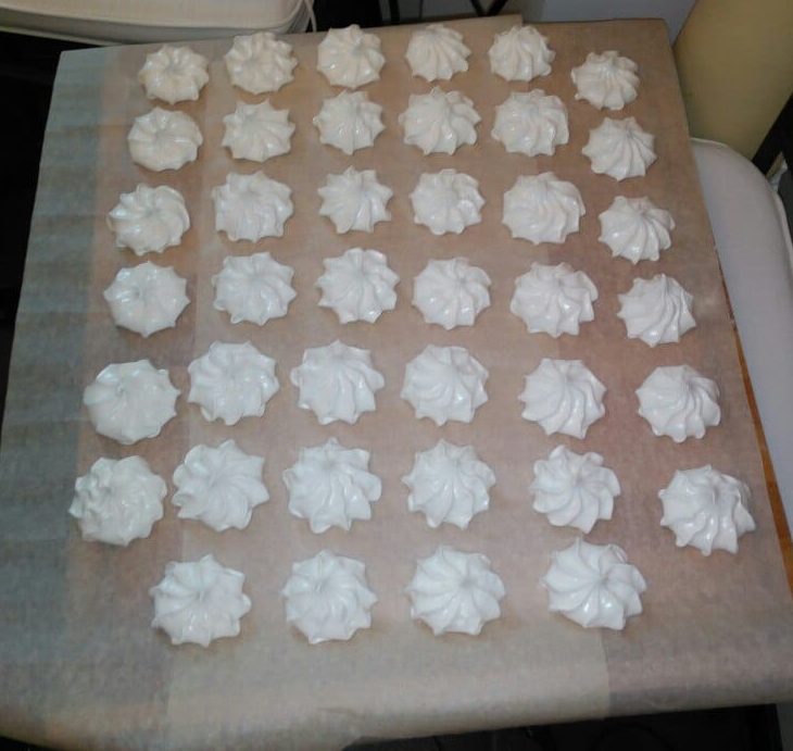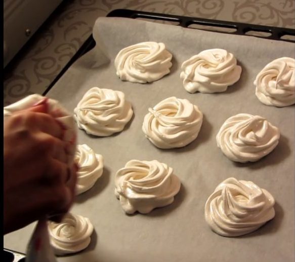 - After leaving the mass for thirty minutes, and then lay the mixture with a spoon or using a cooking syringe on a baking sheet covered with parchment. Put the marshmallows in the refrigerator overnight.