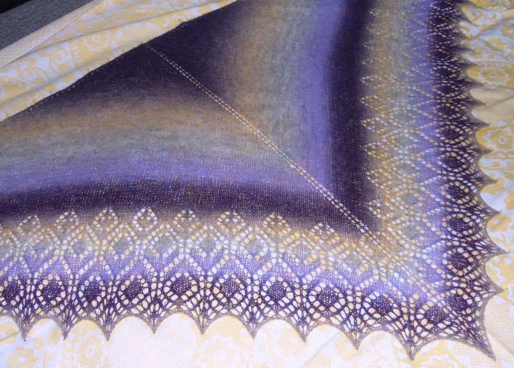 Heavy-duty shawl with fan patterns with a knitting pattern and detailed description